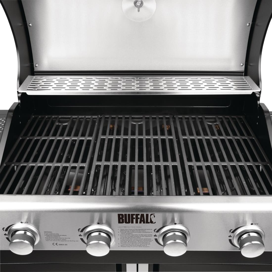 Whether it's for a busy outdoor event or just the home, the Buffalo 4 burner gas barbecue is a fantastic choice for cooking fantastic-tasting BBQ food. Designed for versatility and reliability, the Buffalo has all the functionality you'd expect from a professional gas grill—powerful burners, precise temperature control, and safe operation—all wrapped up in stylish good looks.