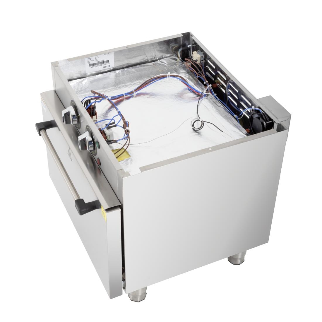 Reliable and versatile, the Buffalo 600 Series under-counter convection oven is an excellent choice for maximizing the available space in your kitchen. The powerful main oven boasts a generous internal capacity, accommodating up to three full-size gastronorm trays. With its fan-assisted feature, cooking times are reduced, and even temperatures are maintained throughout the cavity, eliminating the need to swap shelves for different temperatures.