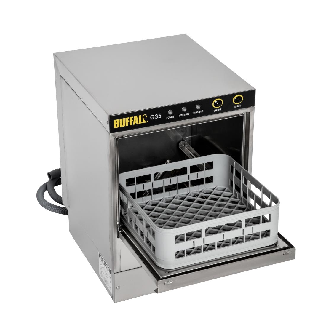Compact and easy to use, the Buffalo glasswasher is an excellent choice for sites with limited workspace. It can be mounted either on a countertop or under the counter, fitting into smaller areas and capable of washing up to 12 glasses at a time. Built-in chemical dosing pumps and powerful rinsing arms ensure great washing results, while the strong stainless steel construction makes it durable and easy to clean. Whether used behind a bar or in the kitchen, the Buffalo provides a handy space-saving solution that cleans glasses perfectly.