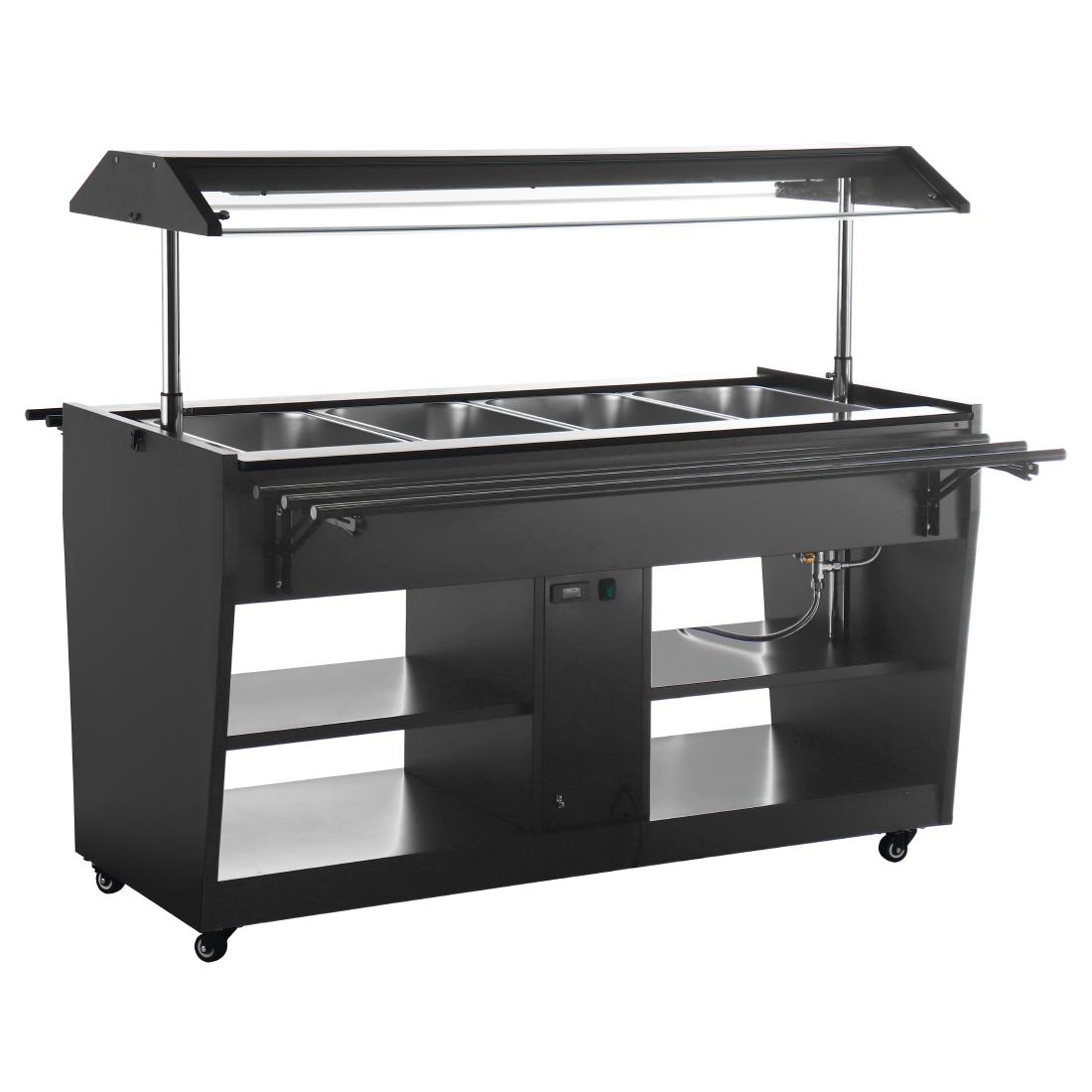 Built-in LED lighting enhances the food display, ensuring dishes remain visually appealing throughout service. Adjustable tray slides improve accessibility for guests and staff, making it easier to serve or self-serve with minimal hassle. Lockable castors provide stability during use and allow quick repositioning for cleaning or storage.