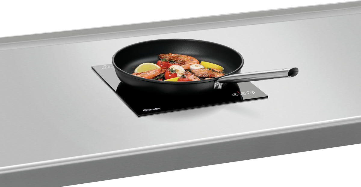 The built-in induction cooker 351TC with touch display is perfect for front cooking areas and buffets. With a total power of 3.5 kW, it can easily master any challenge.