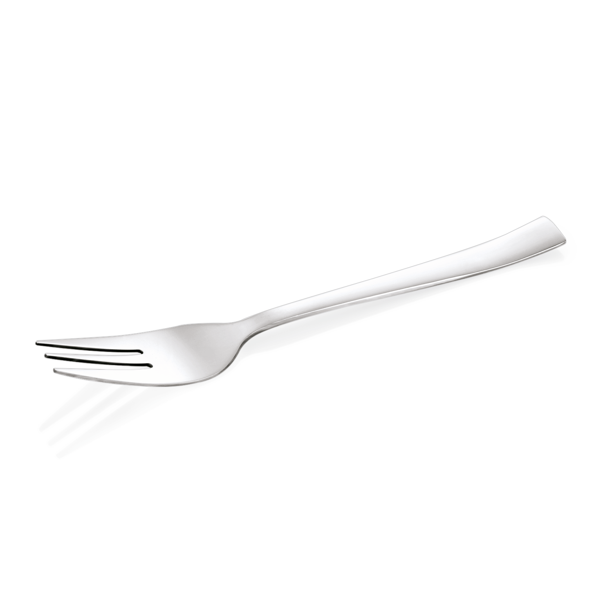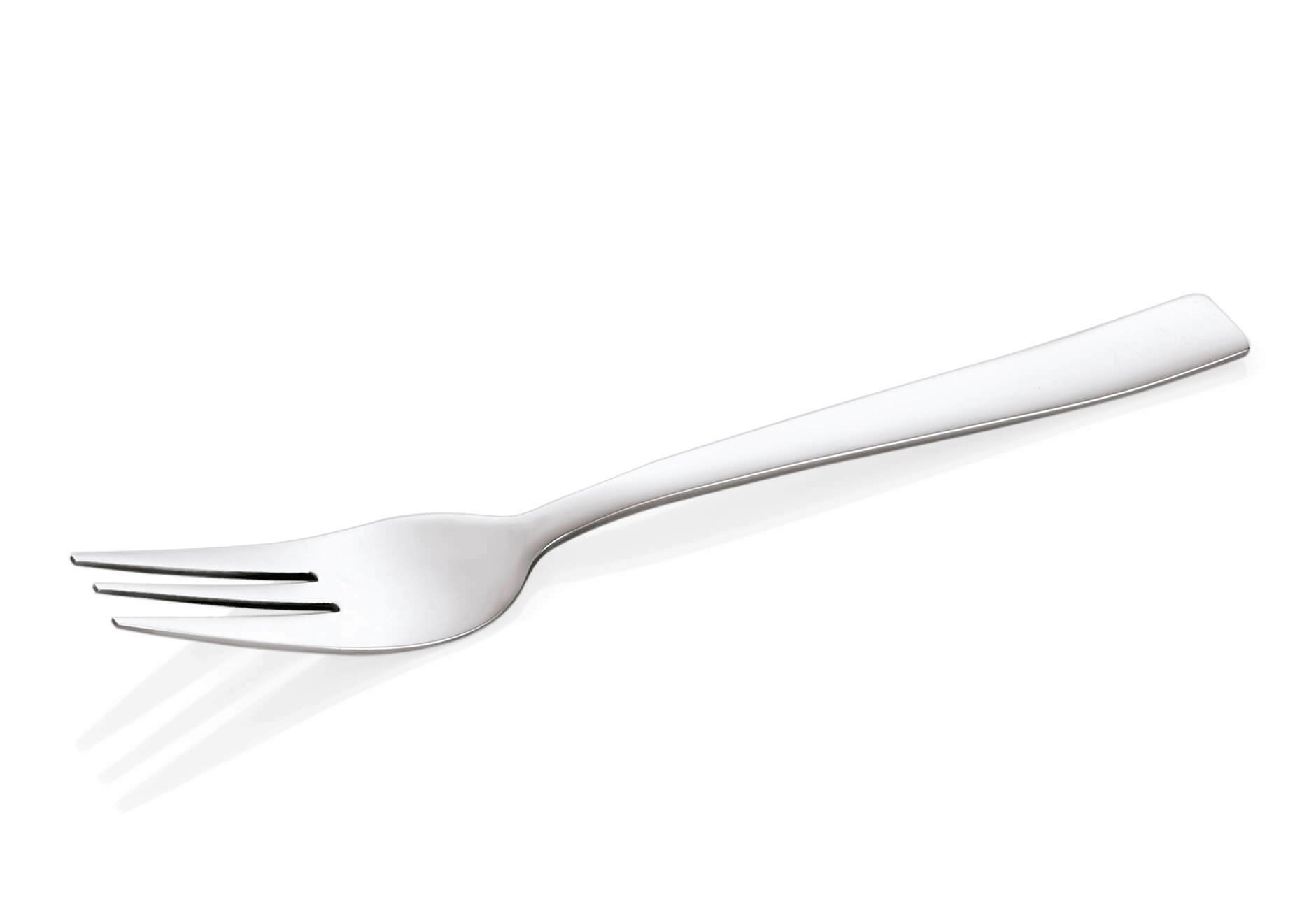 The cake fork is an essential utensil for any dessert enthusiast. Designed specifically for enjoying cakes and pastries, this fork features a unique shape that allows for easy cutting and lifting of delicate slices. Typically smaller than a standard dinner fork, the cake fork often has three or four tines, with one tine being wider or having a slight edge to assist in cutting through soft textures. Crafted from high-quality stainless steel, the cake fork is both durable and elegant, making it a perfect addition to any table setting. Its polished finish adds a touch of sophistication, while its ergonomic design ensures comfortable handling. Ideal for formal occasions or everyday use, the cake fork is a versatile tool that enhances the dining experience by providing both functionality and style.