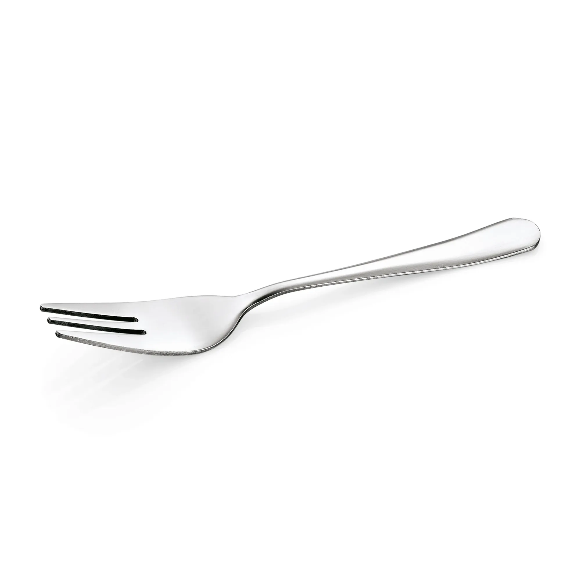 The cake fork is an essential utensil designed specifically for enjoying desserts, particularly cakes. It typically features three or four tines, with one tine wider than the others to assist in cutting through soft textures. Made from high-quality stainless steel, the cake fork is both durable and resistant to corrosion, ensuring long-lasting use. Its elegant design complements any table setting, making it suitable for both casual and formal occasions. The cake fork is dishwasher safe, providing convenience for easy cleaning after use. Ideal for enhancing your dining experience, this utensil is a must-have for any dessert lover.