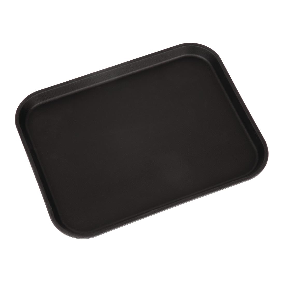 Give your waiting staff and customers complete peace of mind when carrying food and drink in your premises with the 457(W) x 355(D)mm black Cambro Camtread fibreglass rectangular non-slip canteen tray. Featuring a thick non-slip surface, this tray ensures crockery and glassware remain firmly in place during transport, preventing costly and dangerous spills during service.