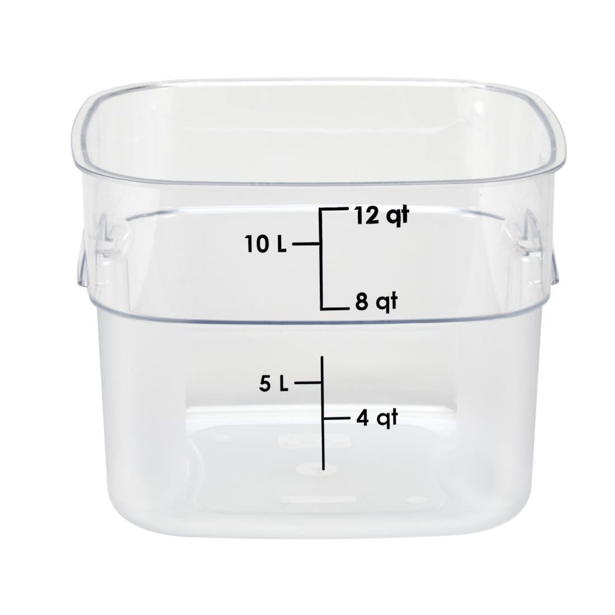 The FreshPro's curved corners and textured grip enable safer, four-sided pouring and easier handling. The color-coded system with matching covers (sold separately), drains, and easy-to-read graduations offers at-a-glance inventory and ease of use, essential for fast-paced kitchens. Thanks to its polypropylene construction, the container is highly durable and resistant to staining, acid damage, and odor retention.