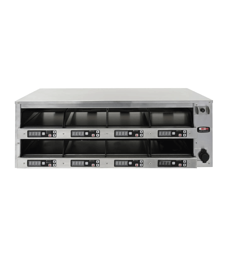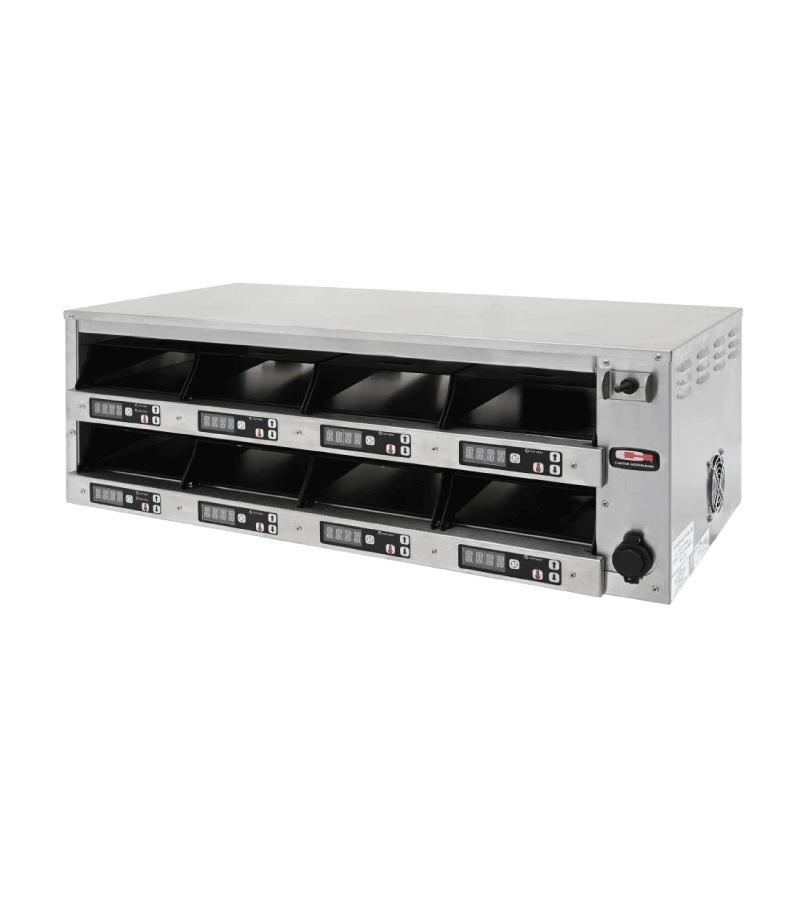 The Carter Hoffmann M243S-2T Hot Food Holding Cabinet is a professionally designed, top-of-the-line commercial food warmer and holding cabinet. Featuring stainless steel construction, adjustable temperature control, and a convenient delivery shelf, this hot food holding cabinet is the perfect choice for any commercial kitchen.
