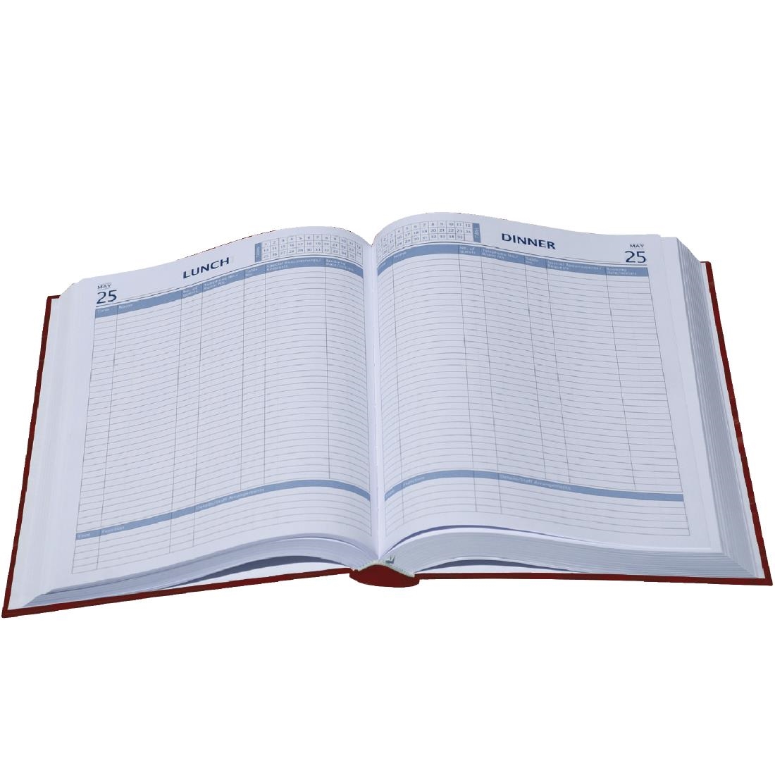 An attractive and practical diary designed to accommodate up to 35 table bookings for both lunch and dinner sittings. The page features include sections for special requirements, booking date, and initials, along with a convenient at-a-glance grid for easy reference.