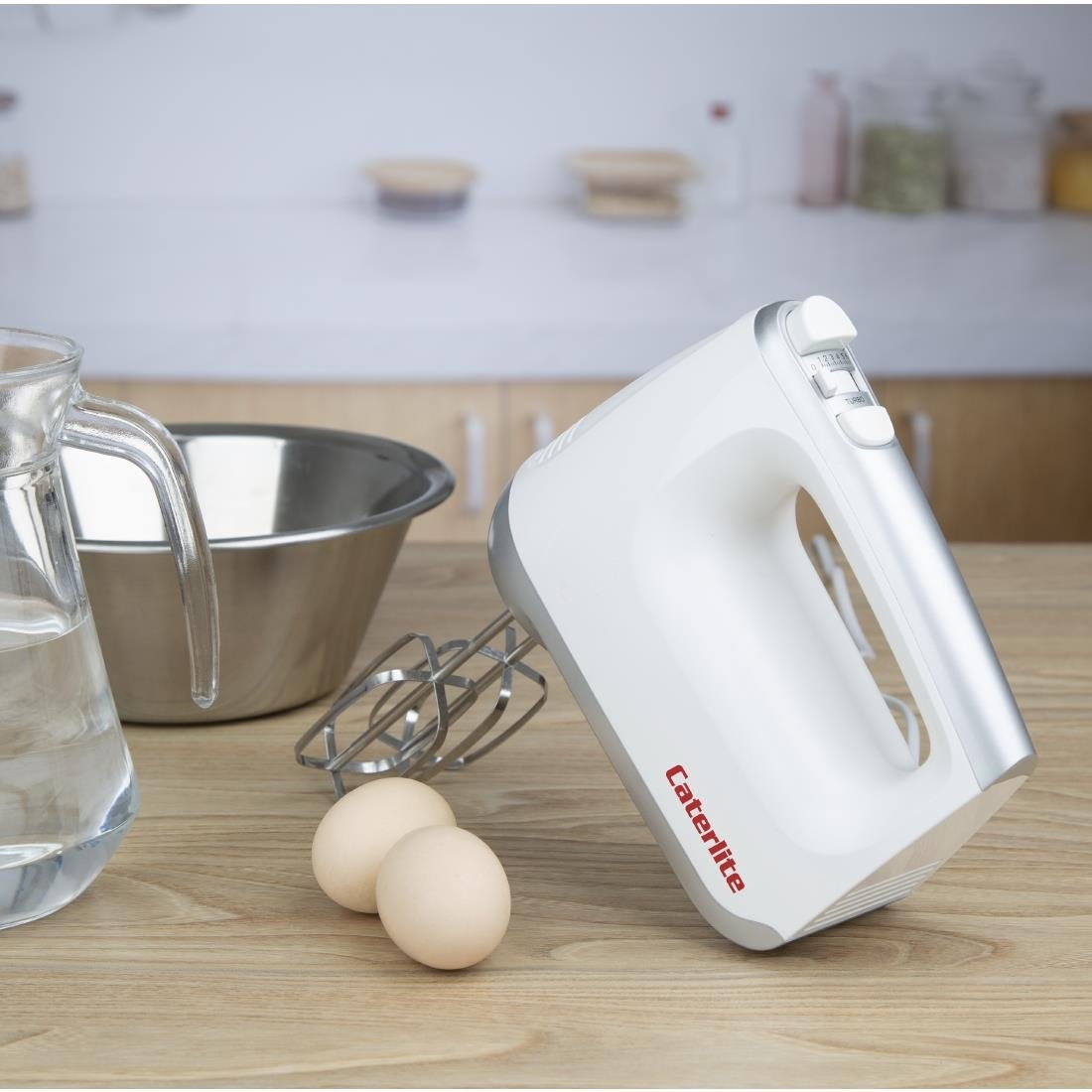 Smart and stylish, the Caterlite hand mixer is a great addition to the kitchen. Why whisk by hand when you can mix up batters, creams, and sauces with ease? Simply slot in the appropriate mixing head and switch on. The powerful 400W motor gets straight into action, gradually building up speed to reduce mess. Food is quickly mixed, and thanks to the lightweight design, it's easy and comfortable to operate.