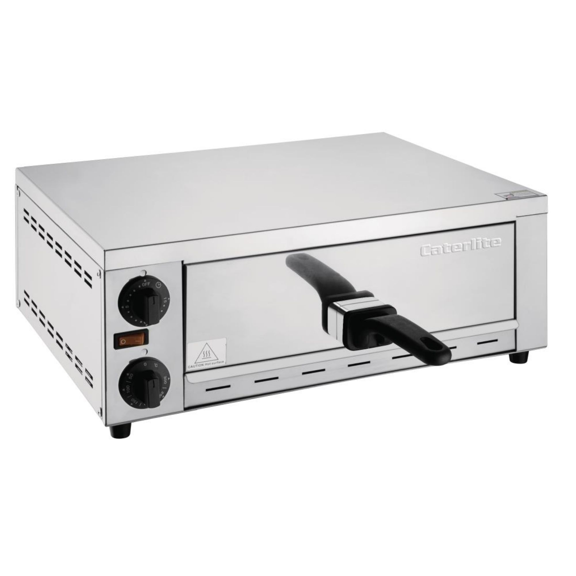 The simple front-mounted dial temperature and timer make achieving consistent results incredibly easy, while the easy-clean stainless steel construction and compact design ensure the pizza oven is a fantastic choice for mobile catering vans, village cafés, and homes.