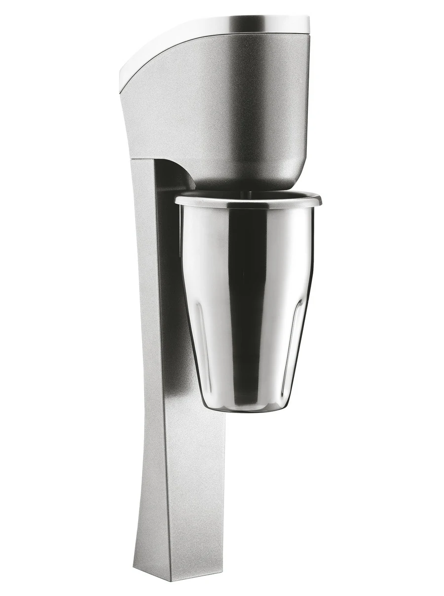 The wall-mounted single spindle drinks mixer features a polished finish and comes with a stainless steel container. This mixer is designed for efficient and convenient use, making it an ideal addition to any kitchen or bar setting. Its sleek design not only enhances the aesthetic appeal of your space but also ensures durability and ease of maintenance. The stainless steel container is robust and easy to clean, providing a reliable solution for mixing drinks. This product is perfect for both professional and home use, offering a high-quality mixing experience.