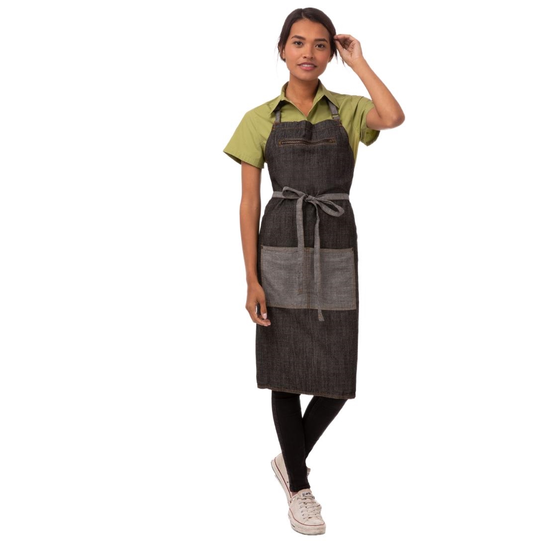 Stay organised and maintain a stylish appearance with the Chef Works Manhattan Bib Apron, featuring a zip chest pocket for secure storage and two front pockets for easy to access, practical storage for your essentials. A 100% cotton denim construction gives the apron increased durability and strength, making it perfect for use in demanding environments, from busy bars to bustling restaurants.