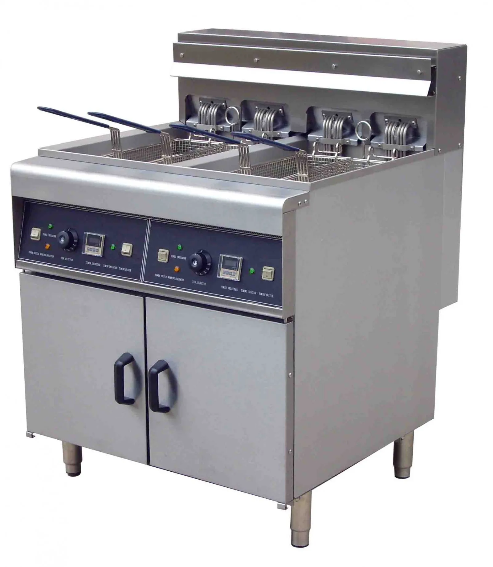 The Chefsrange DF28L-2 is a high-capacity twin tank electric fryer, offering a total capacity of 28+28 liters. This fryer is designed to meet the demands of busy commercial kitchens, providing efficient and reliable frying capabilities. Each tank operates independently, allowing for versatile cooking options and the ability to fry different foods simultaneously without flavor transfer. The robust construction ensures durability and longevity, making it a valuable addition to any professional kitchen. With user-friendly controls and safety features, the Chefsrange DF28L-2 is engineered to deliver consistent results while maintaining ease of operation.