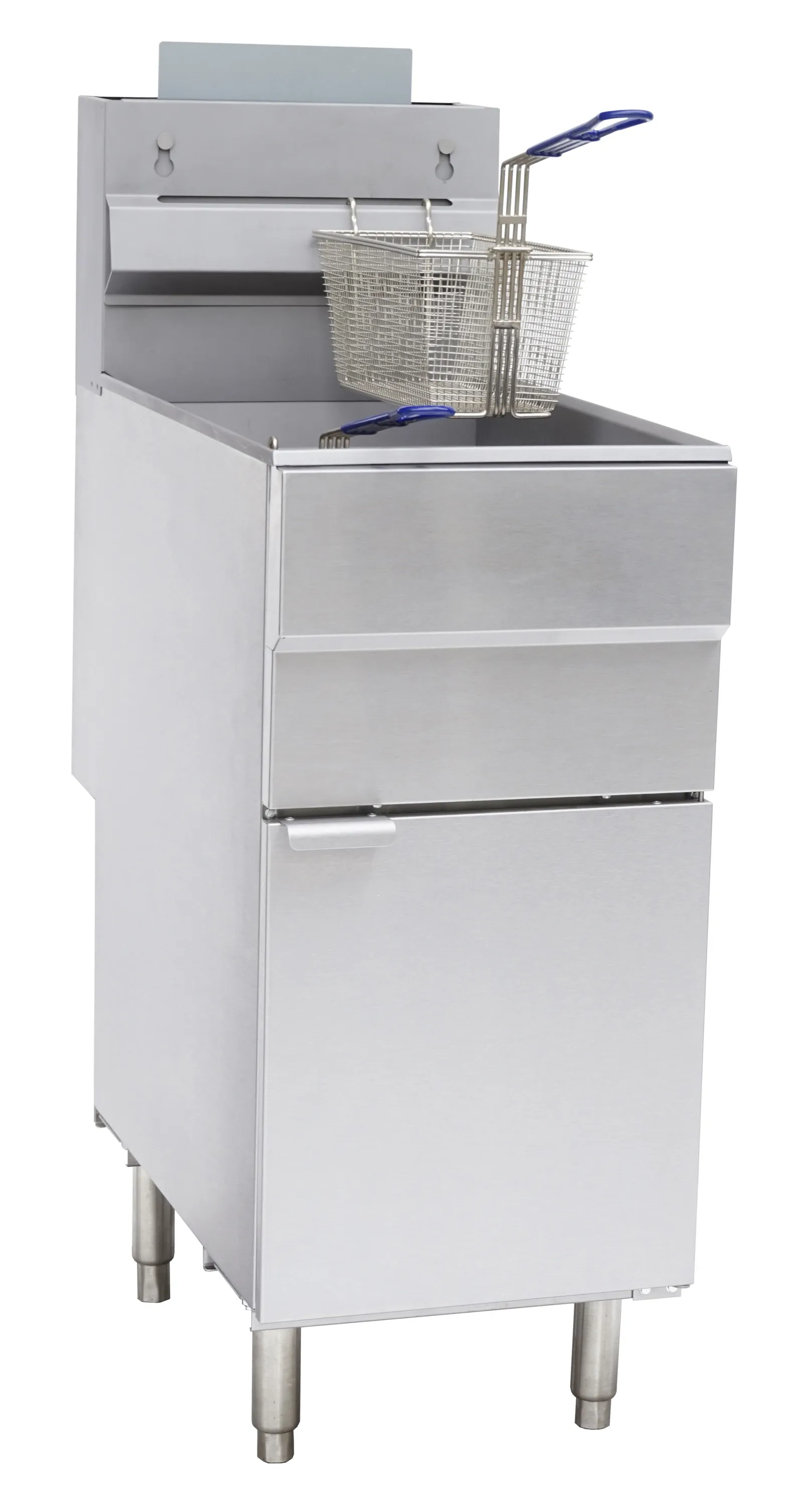 The Chefsrange GF120 single tank gas fryer is a high-output, four-burner fryer with a 120,000 BTU output. It is ideal for fast food operations as well as other operators needing quick recovery times. This super reliable machine comes with a two-year parts warranty, providing total peace of mind.