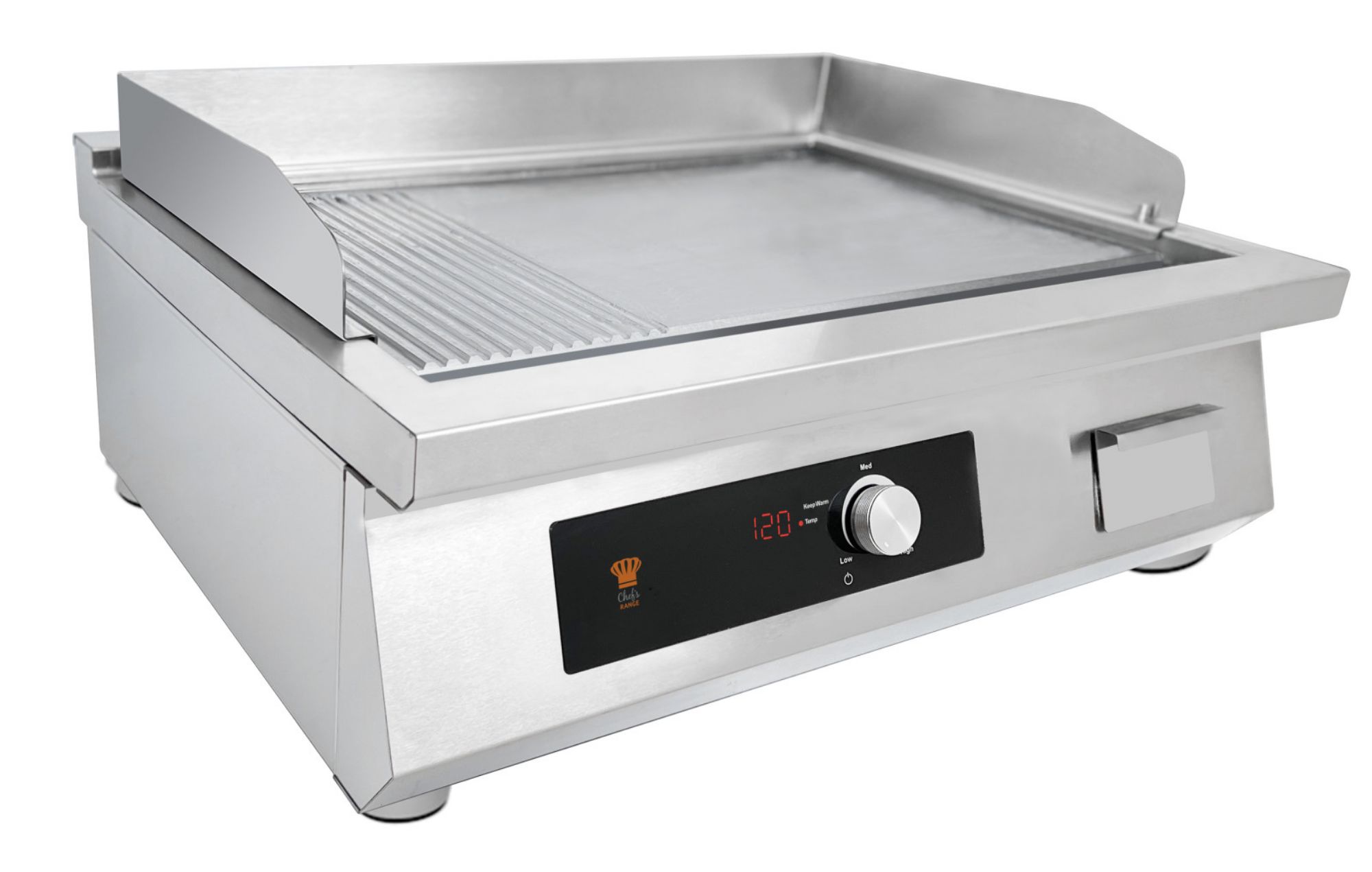 Experience versatile grilling with the Chefsrange Snack 70 BE70IG800 Induction Griddle. Offering a two-thirds smooth plate and one-third ribbed plate, this appliance ensures you have the flexibility to create an array of delectable dishes with precision and ease.