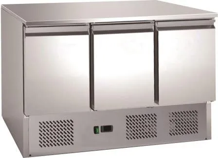 The Chefsrange SS3H is a compact, three-door refrigerated prep counter, ideal for locations with limited space.