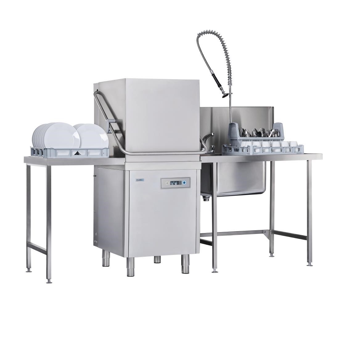 The Classeq Pass-through Dishwasher P500 is a reliable and efficient dishwashing solution for any commercial kitchen. This pass-through dishwasher features an impressive 200-litre capacity, high-quality stainless steel construction, and powerful energy and water-saving functions, making it an ideal choice for busy restaurants, hotels, and other food establishments. With an easy-to-use digital control panel, a detergent-dispensing system, and an adjustable wash cycle, the Classeq P500 ensures a fast and consistent washing process every time.
