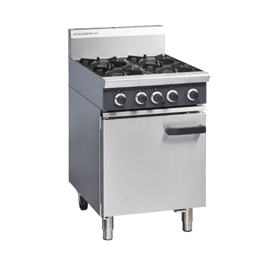 The heavy-duty 2/1 Gastronorm Blue Seal Cobra Static Gas Range CR6D is specifically designed to be at the heart of all commercial and professional kitchens. The gas oven and open burner hob are both easy to clean and service, featuring removable cast iron burners, stainless burner spill covers, and an enamelled oven and door inner, along with a stainless steel finish.