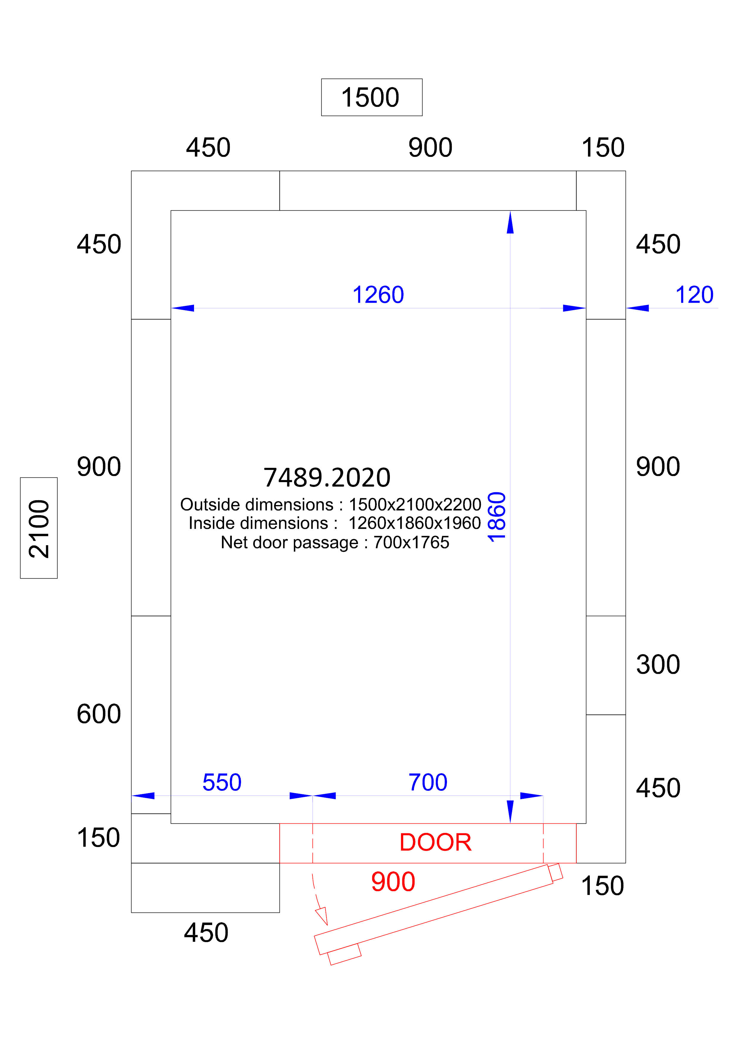- Interior Dimensions (WxDxH): 1260x1860x1960 mm