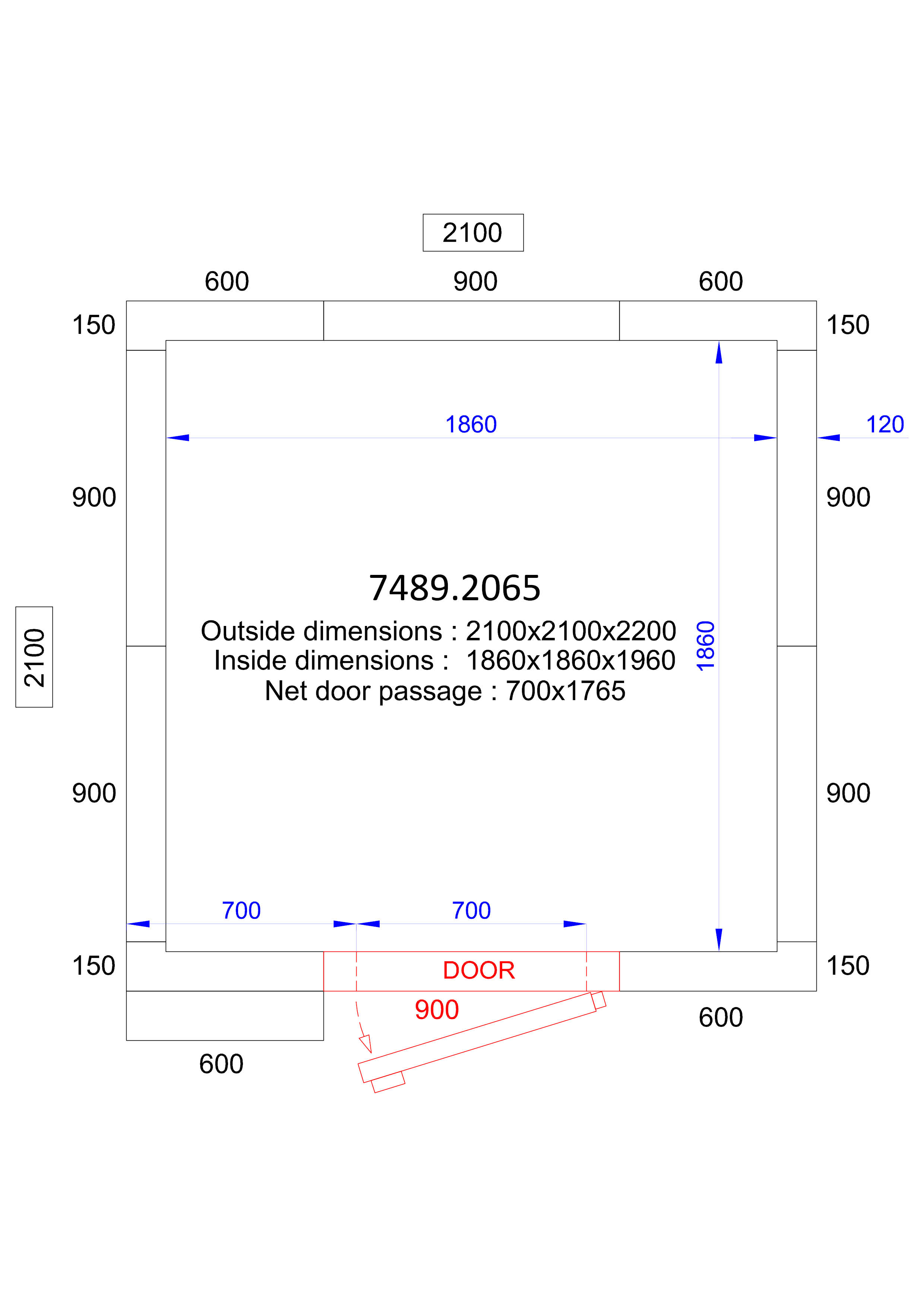 - Interior Dimensions (WxDxH): 1860x1860x1960 mm
