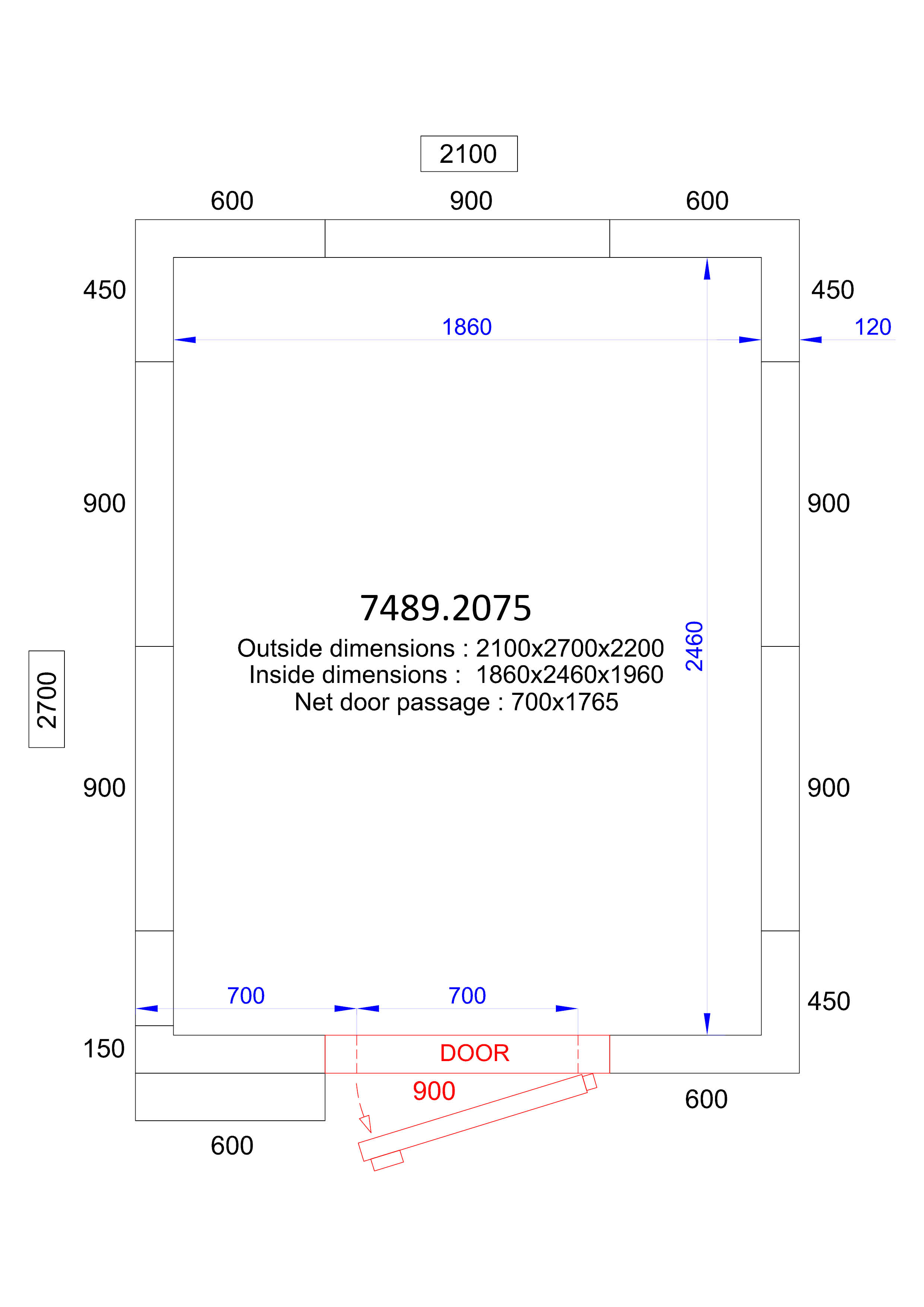 - Interior Dimensions (WxDxH): 1860x2460x1960 mm