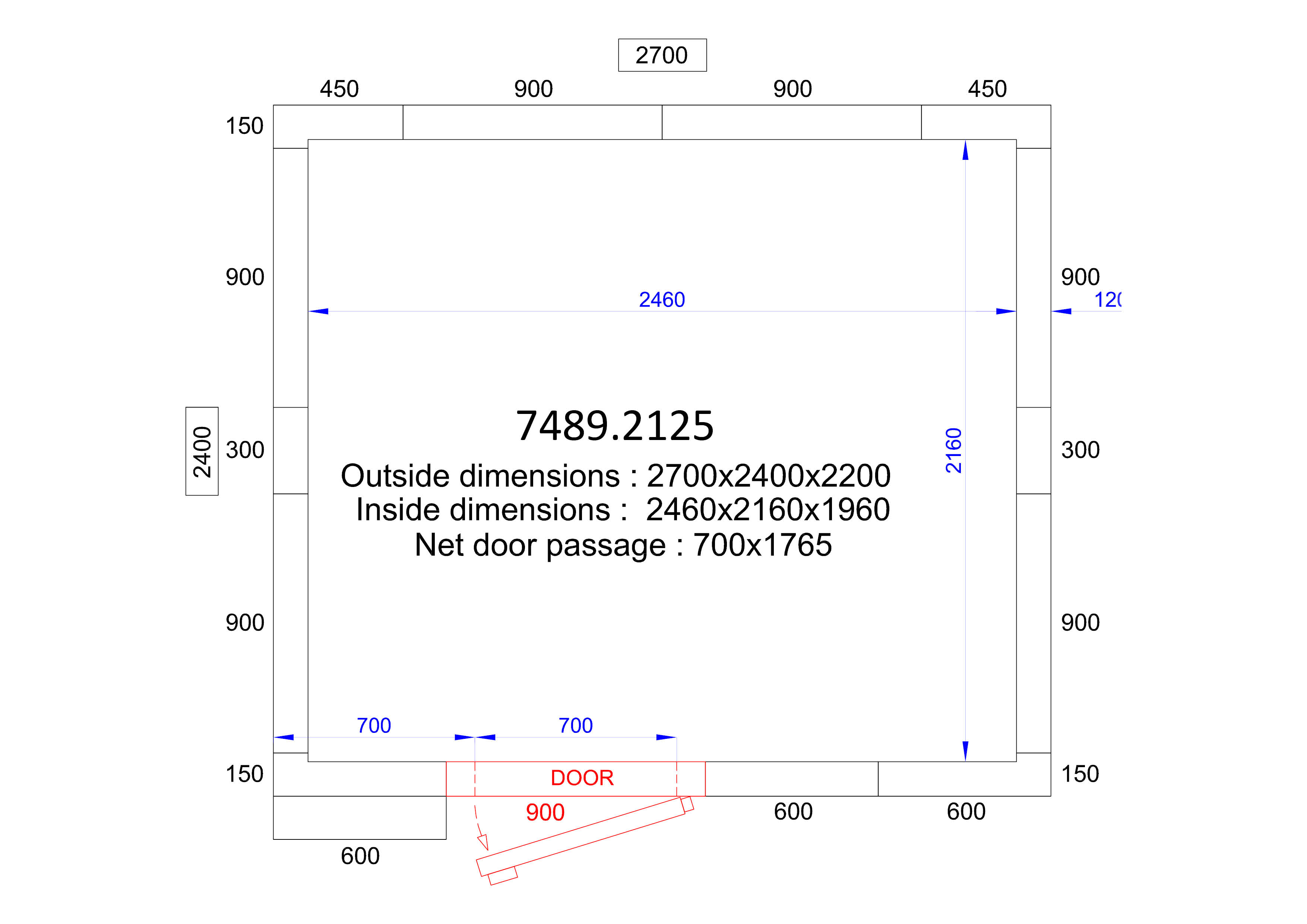 - Interior Dimensions (WxDxH): 2460x2160x1960 mm