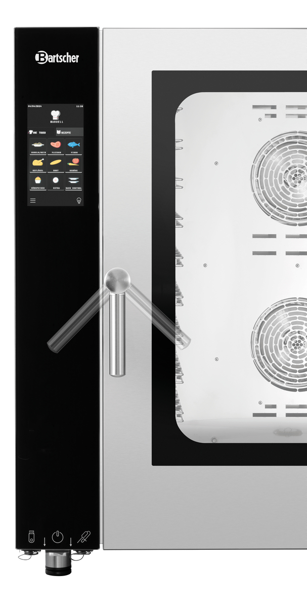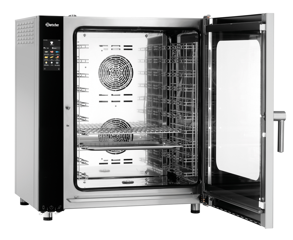 The ideal partner for every kitchen is the Bartscher Silversteam2 combi steamer, featuring ten 1/1 GN inserts. Whether equipped with or without a core temperature sensor, the electronic controls facilitate demand-based regulation of all cooking processes. The rack control function allows for the preparation of different foods at varying times. The Silversteam2 alleviates the burden of monitoring, ensuring everything is managed efficiently for you.