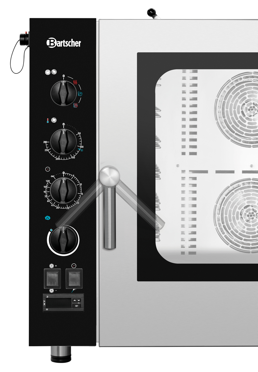 The ideal partner for every kitchen is the Bartscher Silversteam2 combi-steamer, equipped with ten 1/1 GN inserts. This versatile appliance is perfect for convection cooking, steaming, combi-steaming, and low-temperature cooking. The manual controls allow for easy, demand-based regulation of all cooking processes, with the option to use a core temperature sensor if desired.