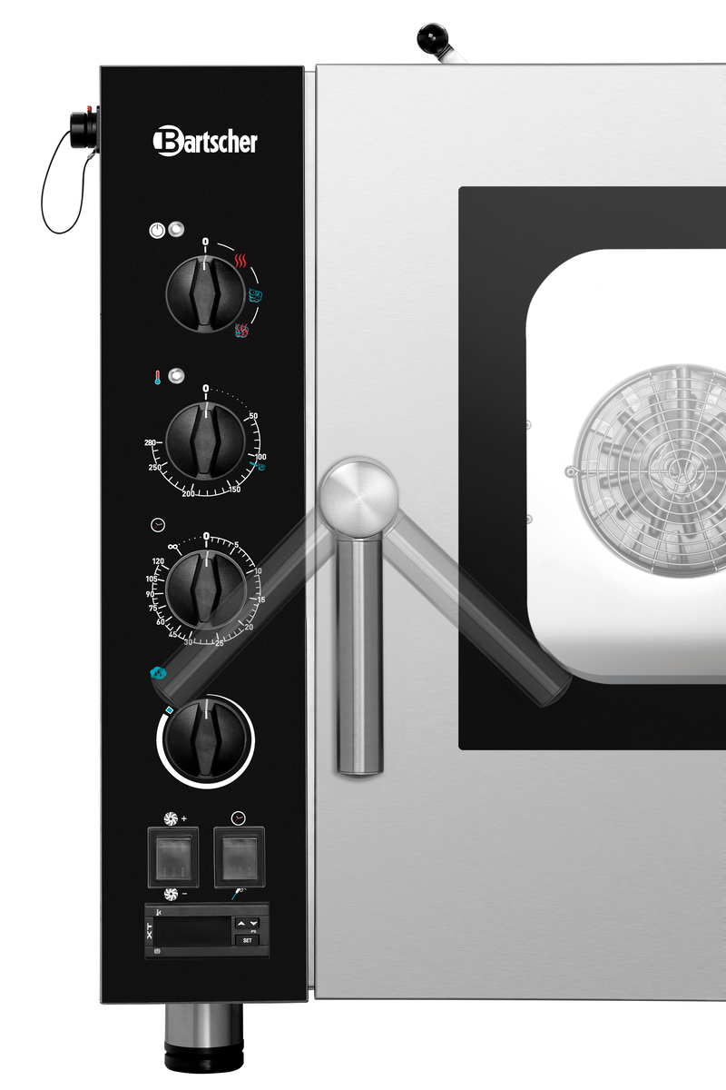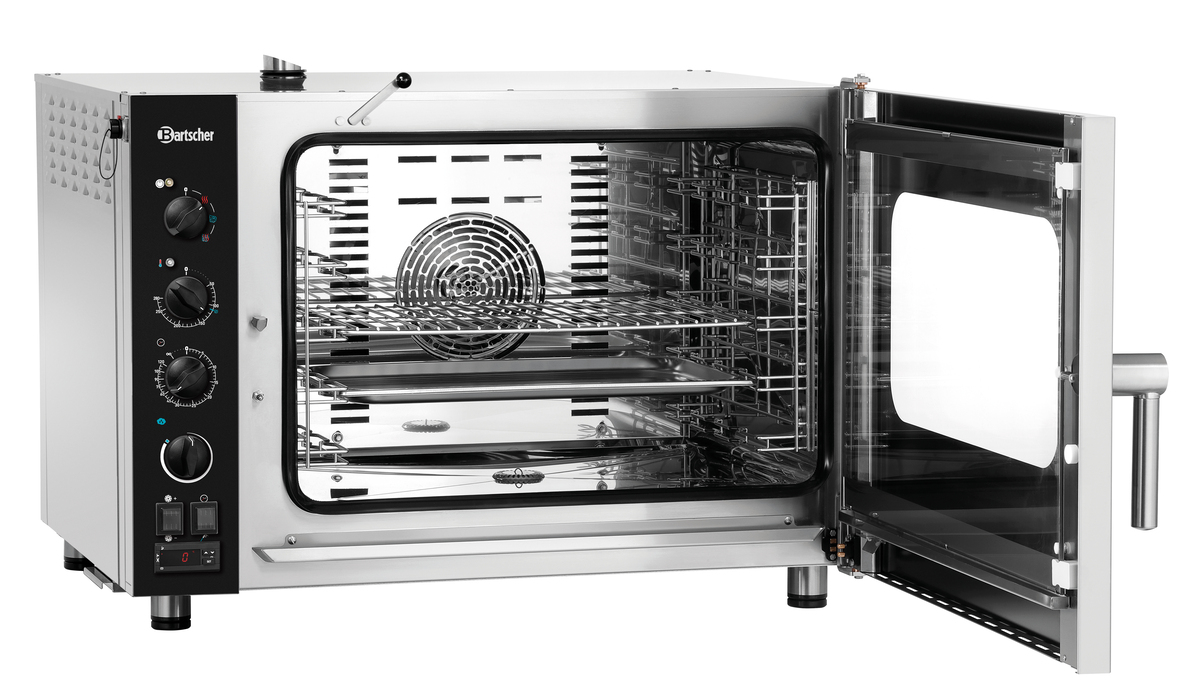 The ideal partner for every kitchen is the Bartscher Silversteam2 combi-steamer, which features five 1/1 GN inserts. This versatile appliance is perfect for convection cooking, steaming, combi-steaming, and low-temperature cooking. The manual controls allow for easy, demand-based regulation of all cooking processes, with the option to use a core temperature sensor if desired.