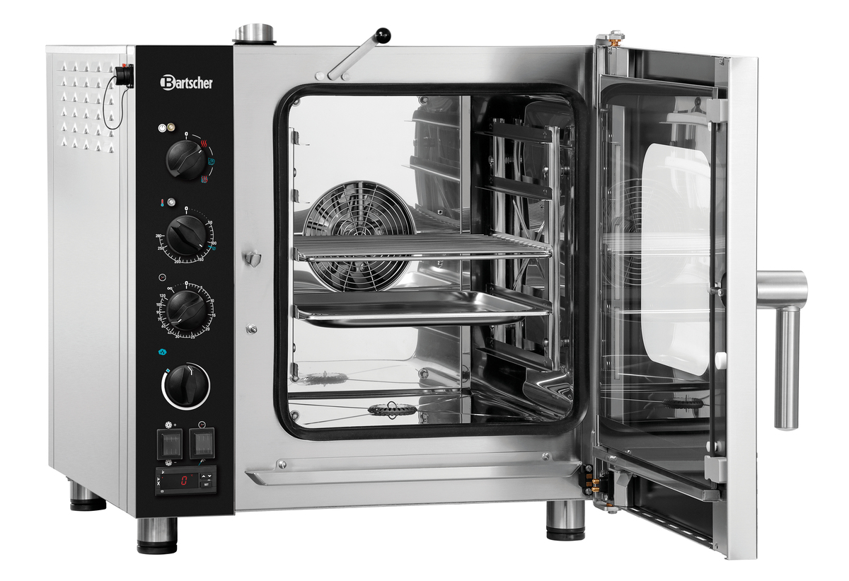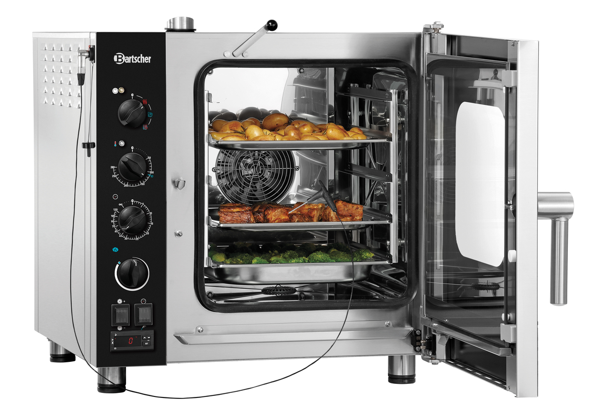 The ideal partner for every kitchen is the Bartscher Silversteam2 combi-steamer, equipped with five 2/3 GN inserts. This versatile appliance is perfect for convection cooking, steaming, combi-steaming, and low-temperature cooking. The manual controls allow for easy, demand-based regulation of all cooking processes, with the option to use a core temperature sensor if desired.