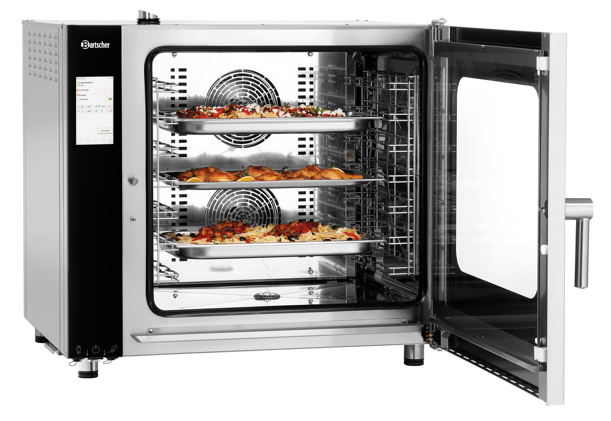 The ideal partner for every kitchen is the Bartscher Silversteam2 combi steamer, equipped with seven 1/1 GN inserts. Whether you choose a model with or without a core temperature sensor, the electronic controls facilitate demand-based regulation of all cooking processes. The rack control function allows for the preparation of different foods at varying times. The Silversteam2 alleviates the burden of monitoring, ensuring everything is managed efficiently for you.