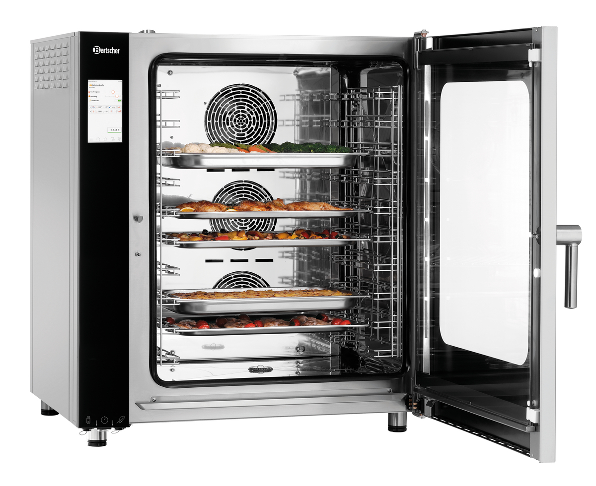 The combi-steamer Silversteam2 P 10 x 1/1 GN offers enhanced efficiency and time savings due to its increased power. Its high performance and rack control function make it capable of handling full cooking chambers with ease. The reduced cooking times, quicker heating, and straightforward handling are notable features that set this appliance apart.