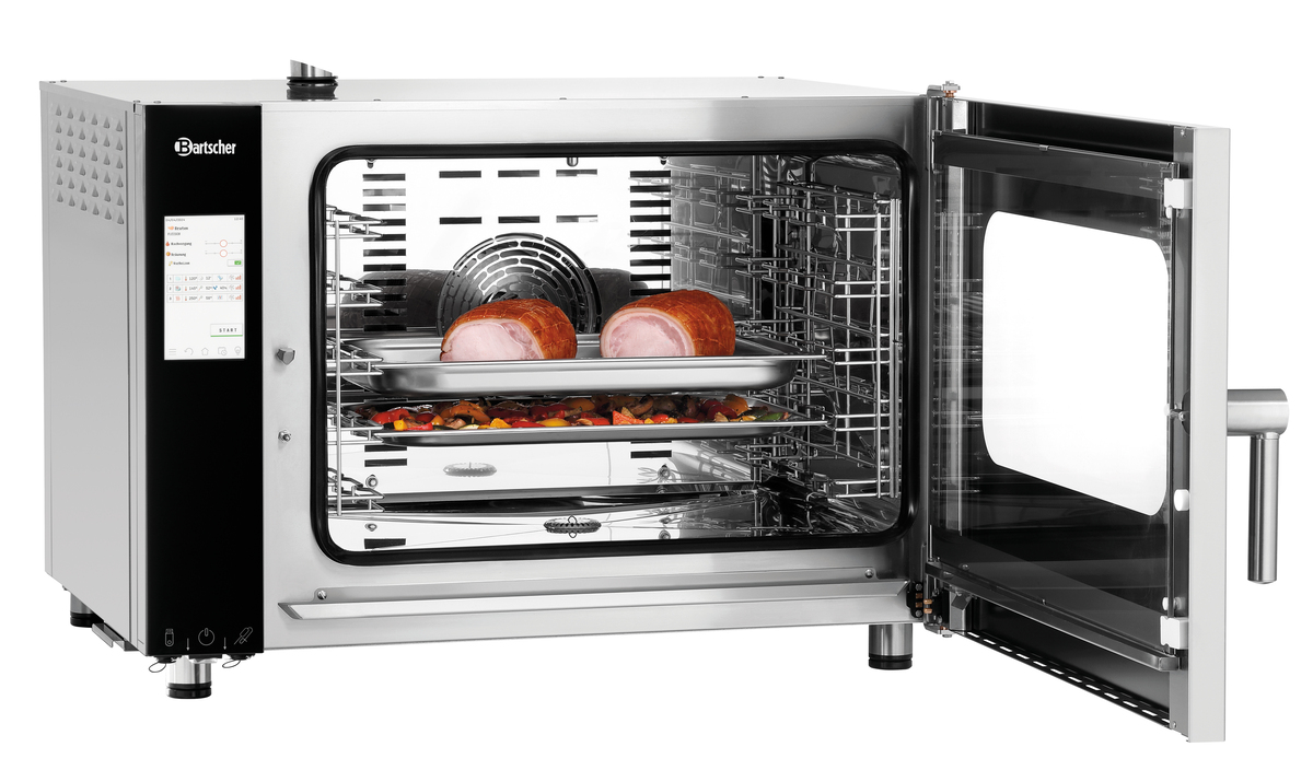 The combi-steamer Silversteam2 P 5 x 1/1 GN offers increased efficiency and time savings due to its enhanced power. Its high performance and rack control function ensure that full cooking chambers are handled with ease. The appliance boasts reduced cooking times, faster heating, and an effective cleaning system, making it a standout choice for any kitchen.