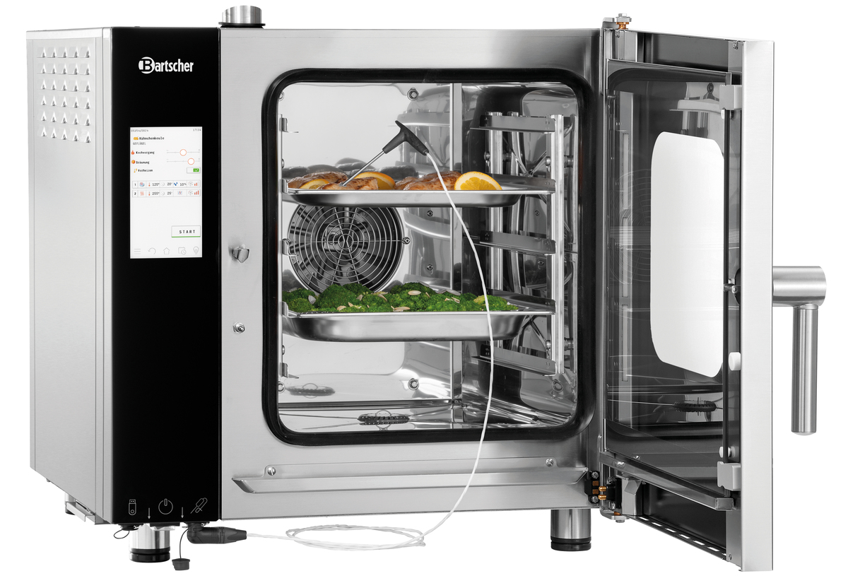 The combi-steamer Silversteam2 P 5 x 2/3 GN offers increased efficiency and time savings due to its enhanced power. With its high performance and rack control function, it can handle full cooking chambers effortlessly. The reduced cooking times, faster heating, and easy handling are standout features that make this appliance a valuable addition to any kitchen.
