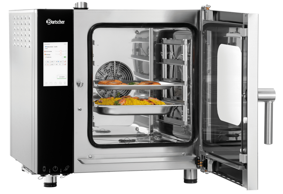 The combi-steamer Silversteam2 P 5 x 2/3 GN offers enhanced efficiency and time savings due to its increased power. With its high performance and rack control function, it can handle full cooking chambers effortlessly. The appliance boasts reduced cooking times, faster heating, and an effective cleaning system, making it a standout choice for professional kitchens.