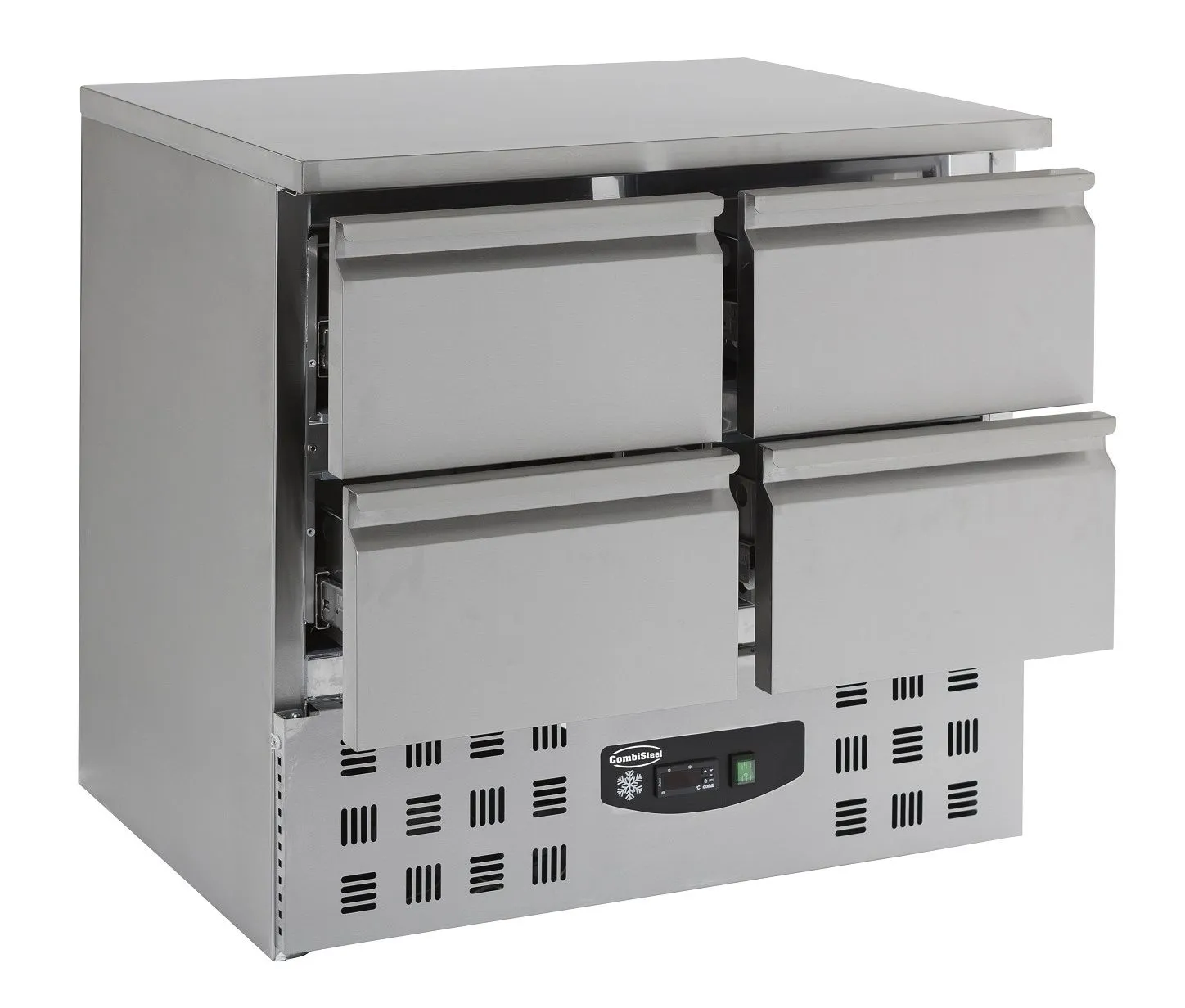 This stainless steel four-drawer counter fridge from Combisteel offers excellent storage versatility while providing a prep counter surface on top. The bottom-mounted motor helps to further reduce the unit's footprint, making it ideal for kitchens where space is at a premium.