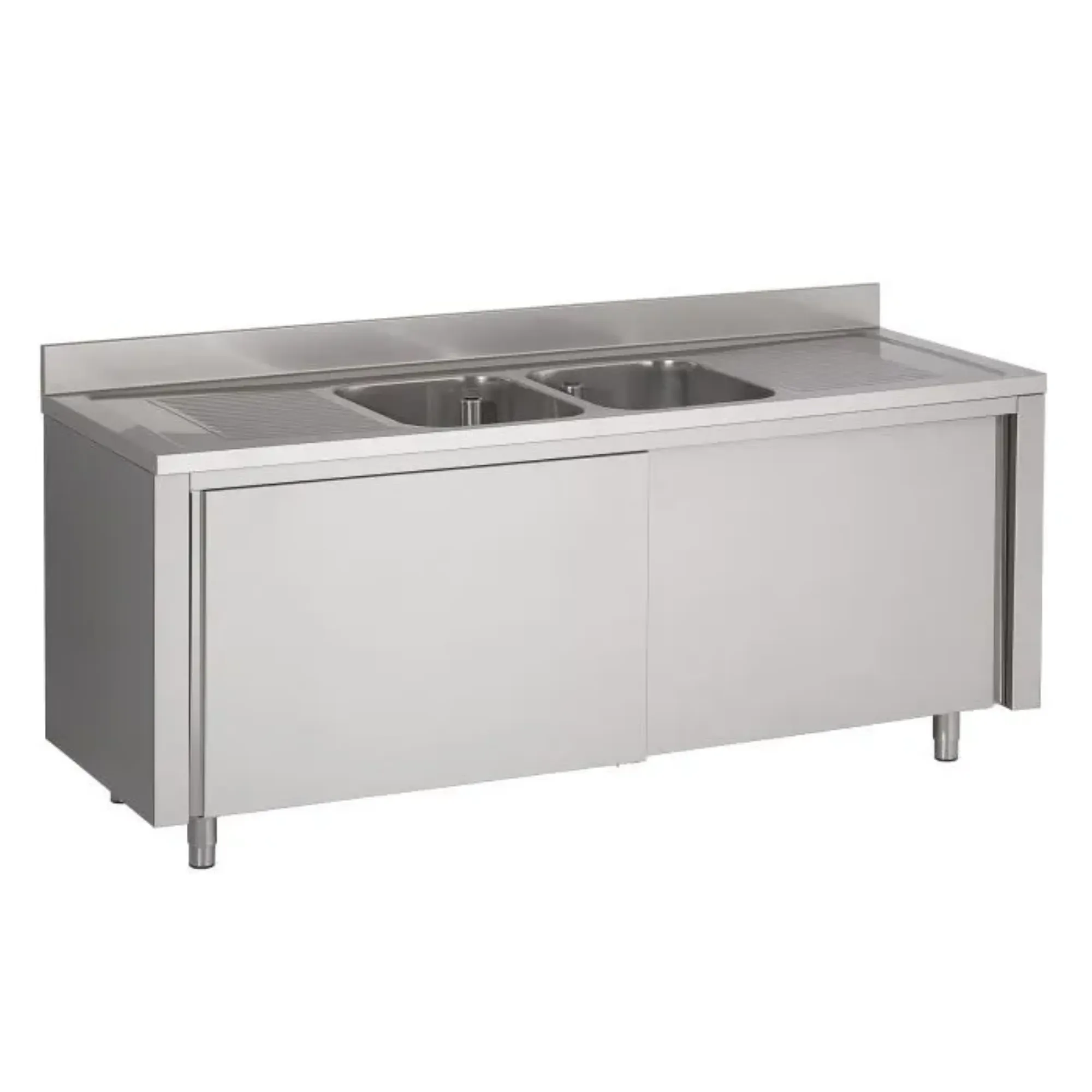 The sink cabinet with sliding doors is an essential component in restaurant kitchens for prewashing dishes. It is designed to maximize the use of available space in your kitchen, ensuring efficiency and convenience in your workflow.