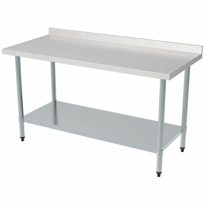 Stainless steel work tables with undershelves are essential products for your commercial restaurant, bakery, cafeteria, or catering business. These tables feature flat surfaces, allowing chefs to tenderize meats, chop vegetables, knead dough, or mix batters efficiently. Additionally, they are equipped with shelves located beneath the work surfaces, providing ideal storage for dishes, small appliances, bulk ingredients, and other supplies.