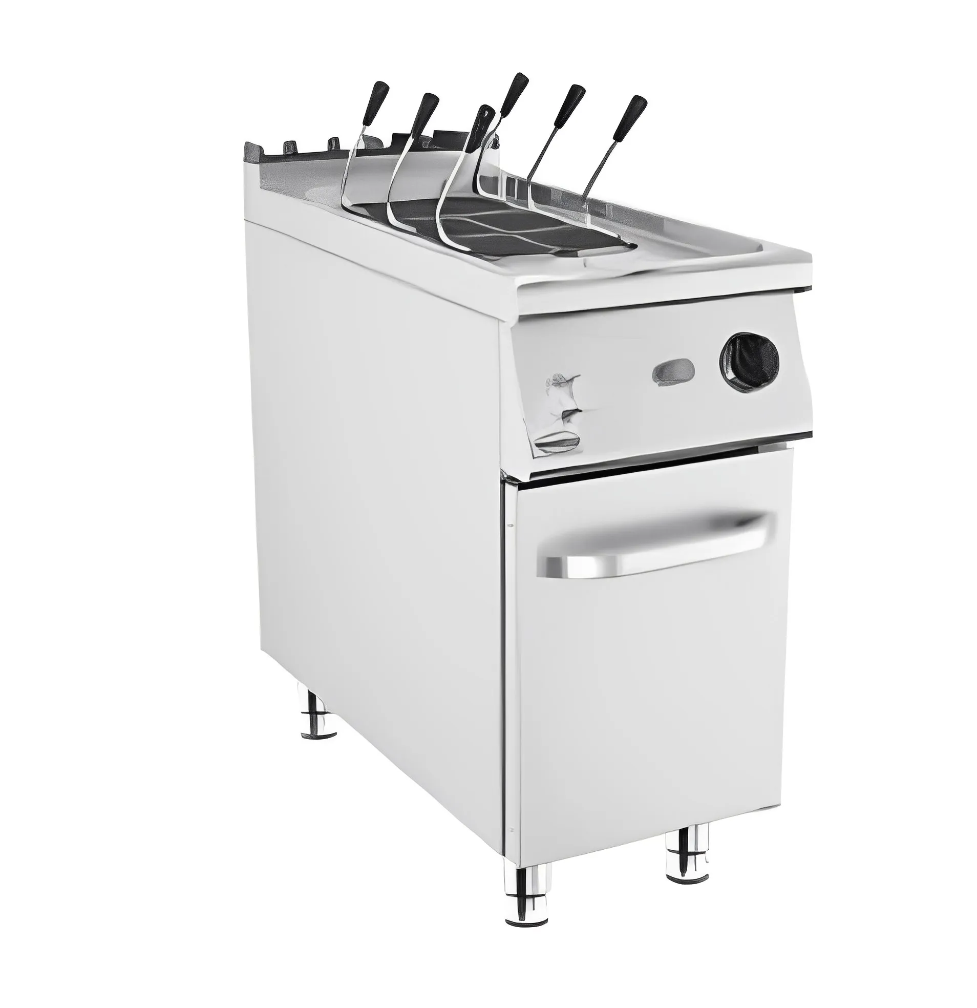 The CombiSteel Base 900 Gas Pasta Cooker, with a capacity of 1 x 24 litres, is constructed from high-quality solid stainless steel, making it a valuable long-term investment for any restaurant. It is designed to deliver high heat output and fuel efficiency, ensuring optimal performance and energy savings.