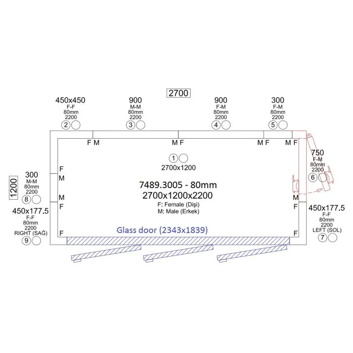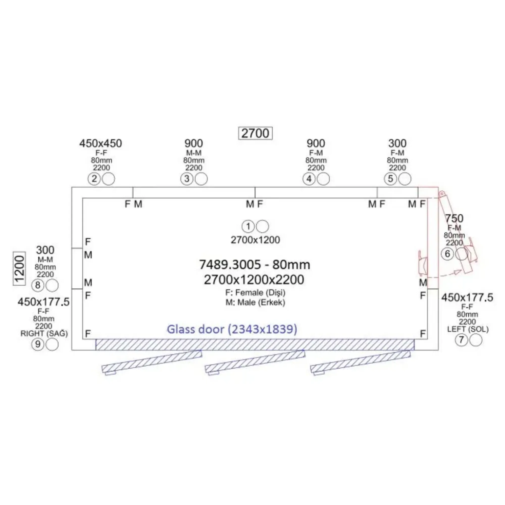 - Interior Dimensions (WxDxH in mm): 2620 x 1120 x 2120