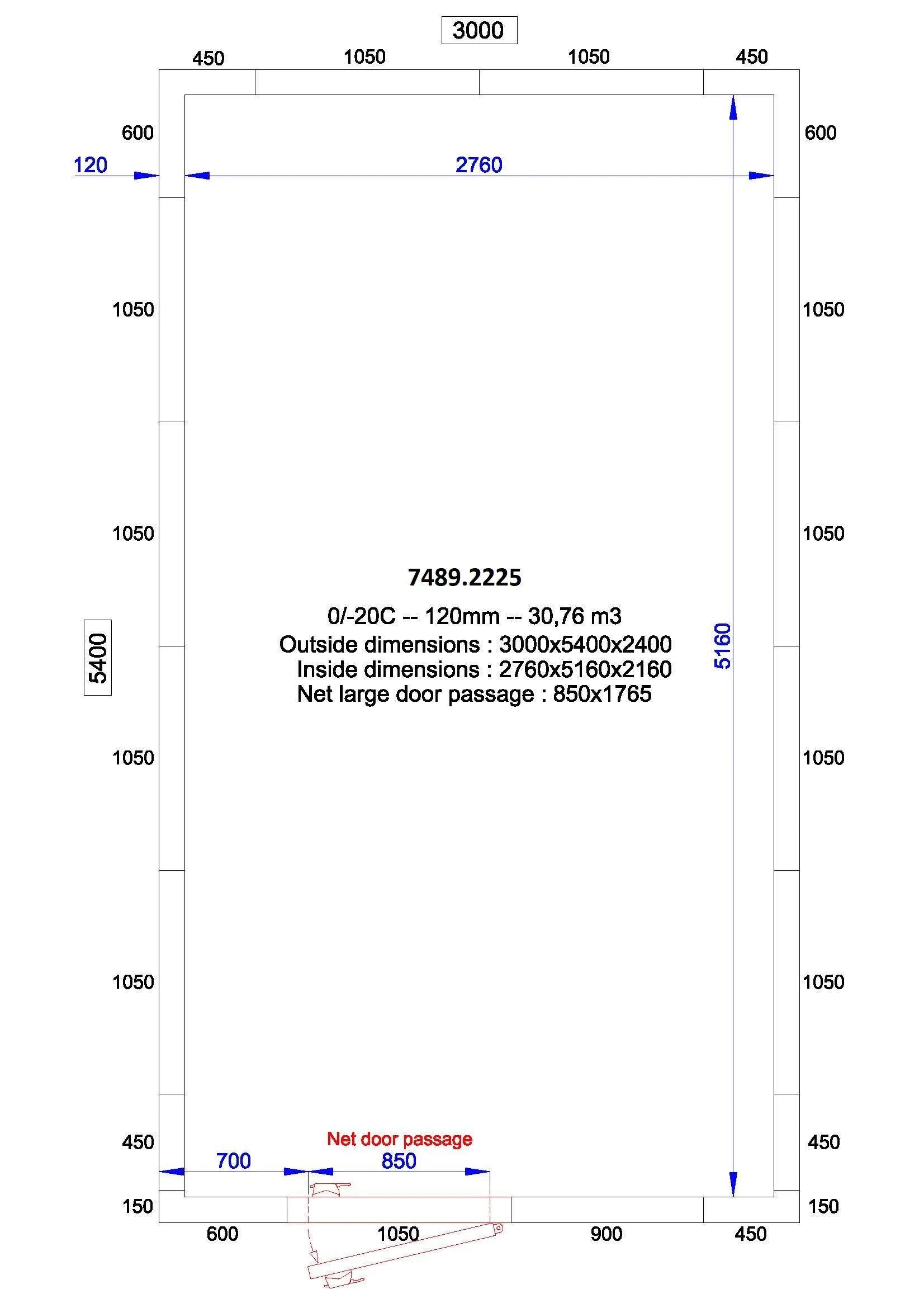 - Dim. interior WxDxH (mm): 2760x5160x2160