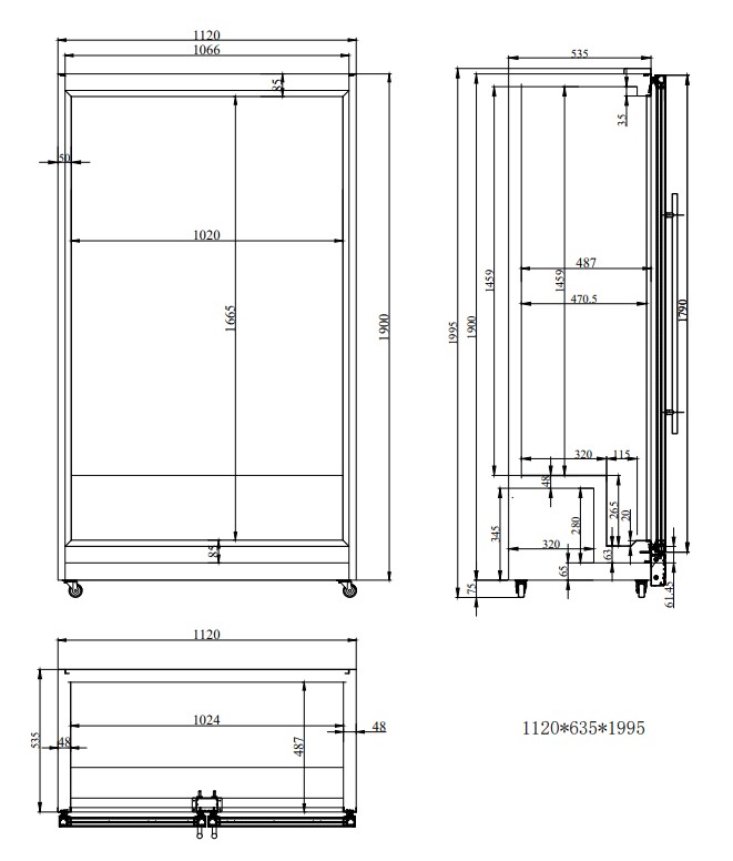 - Interior dimensions (WxDxH in mm): 1024x487x1459