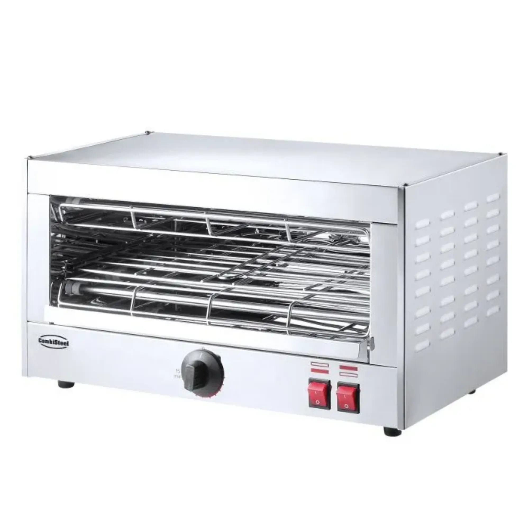 A small broiler oven used to quickly brown, glaze, cook, broil, or toast various foods. The Salamander is often used to provide the nicely browned crust to a crème brûlée, an au gratin dish, or toasted bread.