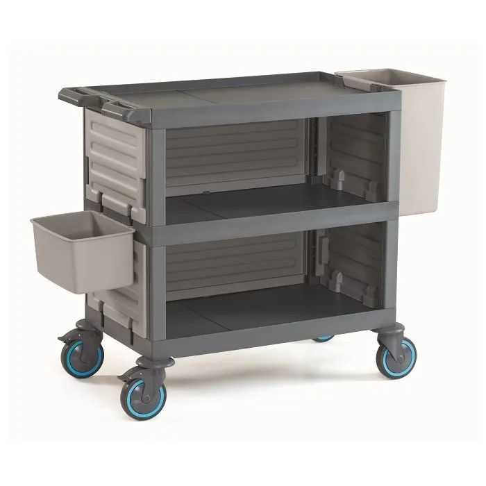 With this classic trolley, you can transport plates, cups, and other items safely from one place to another. The trolley is ideal for everyday use in the catering industry and offers enough space for crockery and cutlery on the three shelves.