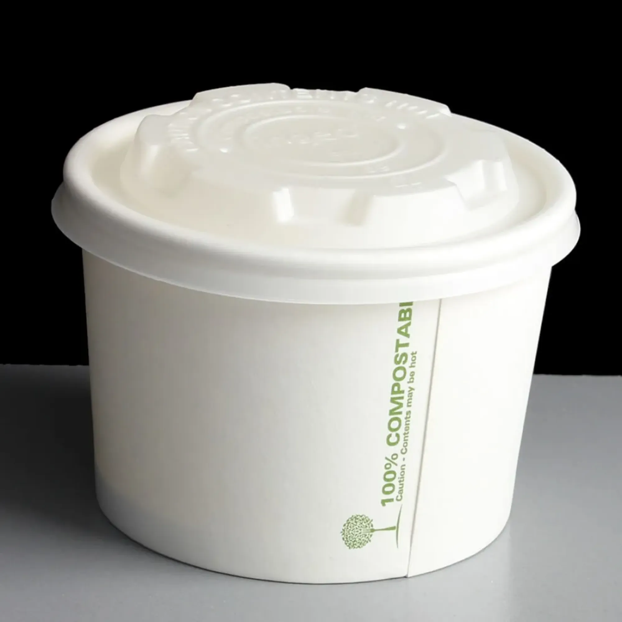 This Compostable 6-8oz Soup Container Lid is a practical secure lid for 6 & 8oz compostable soup containers (05271280 & 22800068). Made from CPLA, a renewable material made from plants. Off-white colour embossed with compostable messaging.