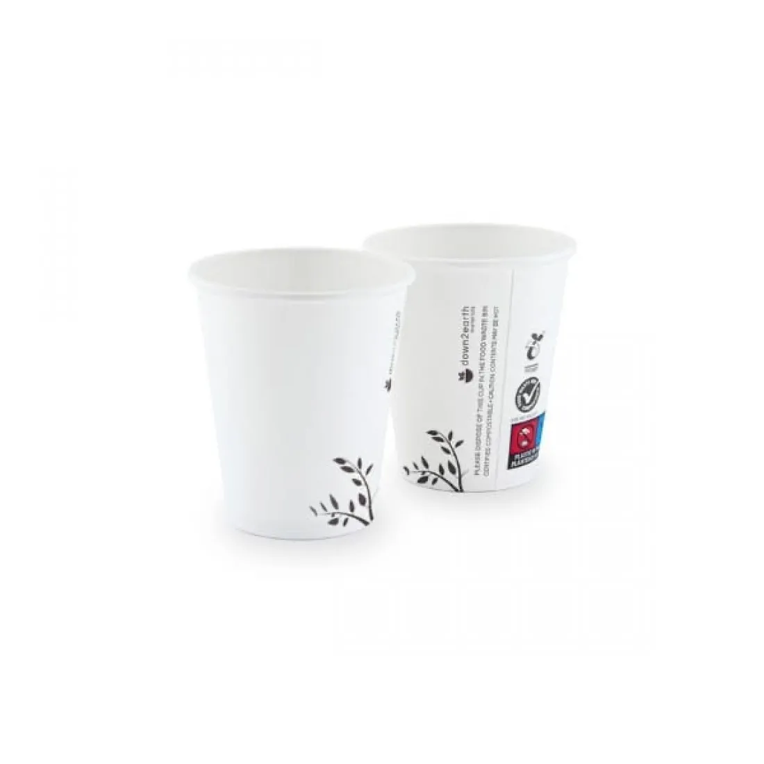 Ideal for espressos and flat whites. The 6oz plain white design allows you write customer names on the cup or add your own branding. The combination of premium paper and plant-based materials makes these cups both compostable and strong.