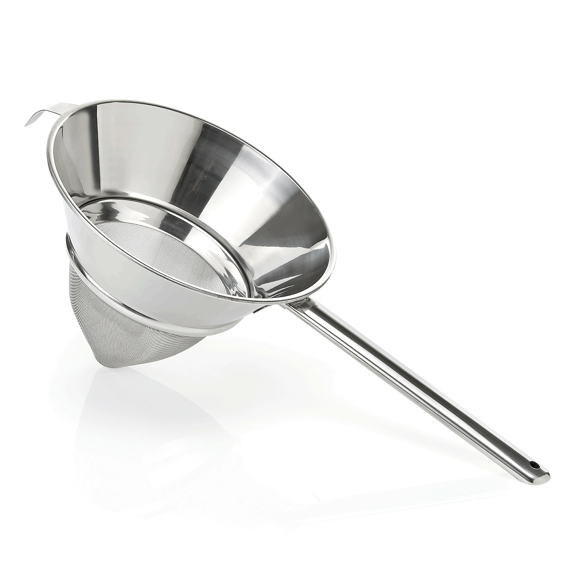 The product features a fine-mesh stainless steel gauze, ensuring durability and effective performance. It is designed with a hollow handle, providing a comfortable grip and ease of use. This combination of materials and design makes it an ideal choice for various applications, offering both functionality and reliability.