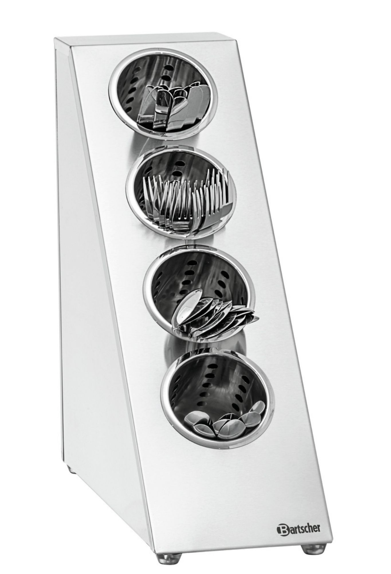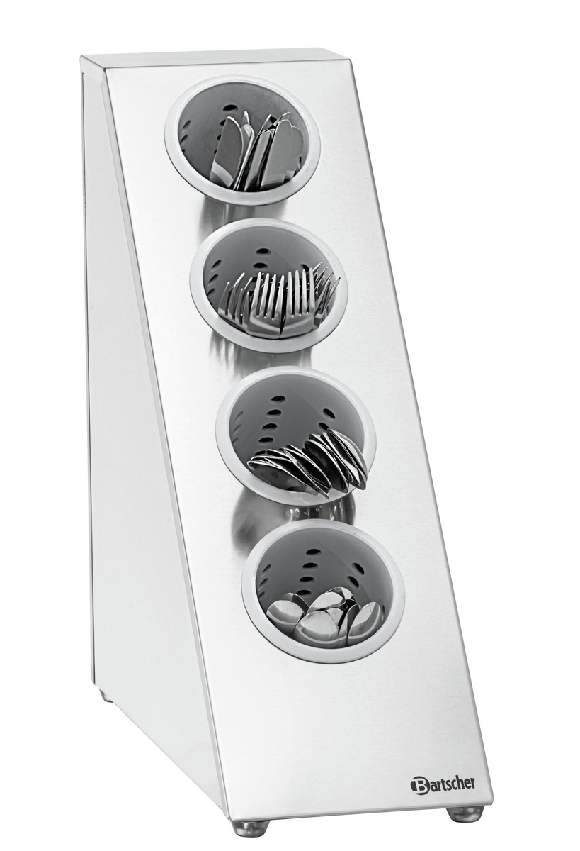 This cutlery holder is perfect for canteens, buffets, and self-service areas. The material quality and the fact that the optionally available cutlery pots can be removed provide the perfect prerequisites for hygienic cleaning.