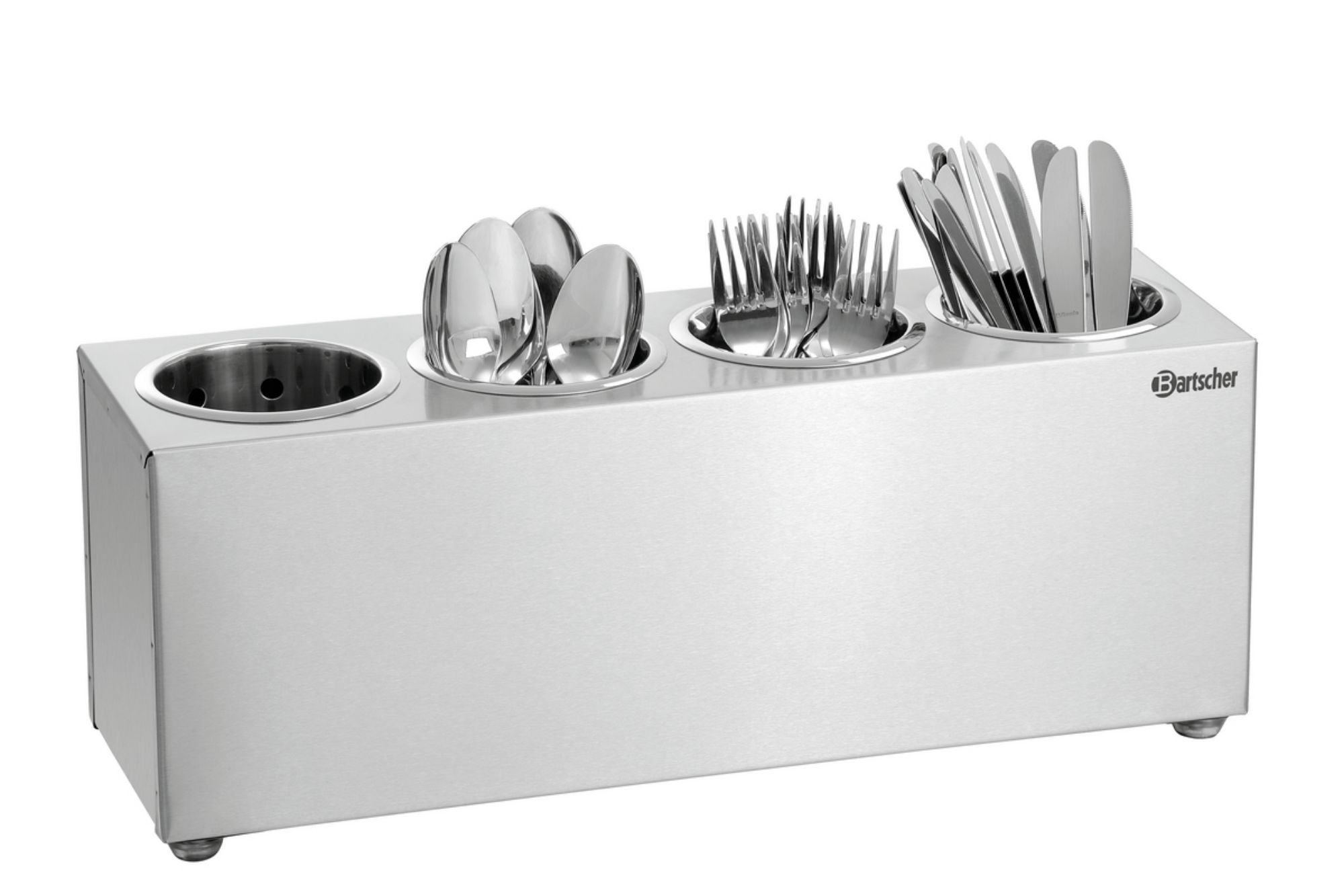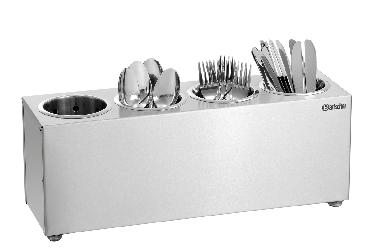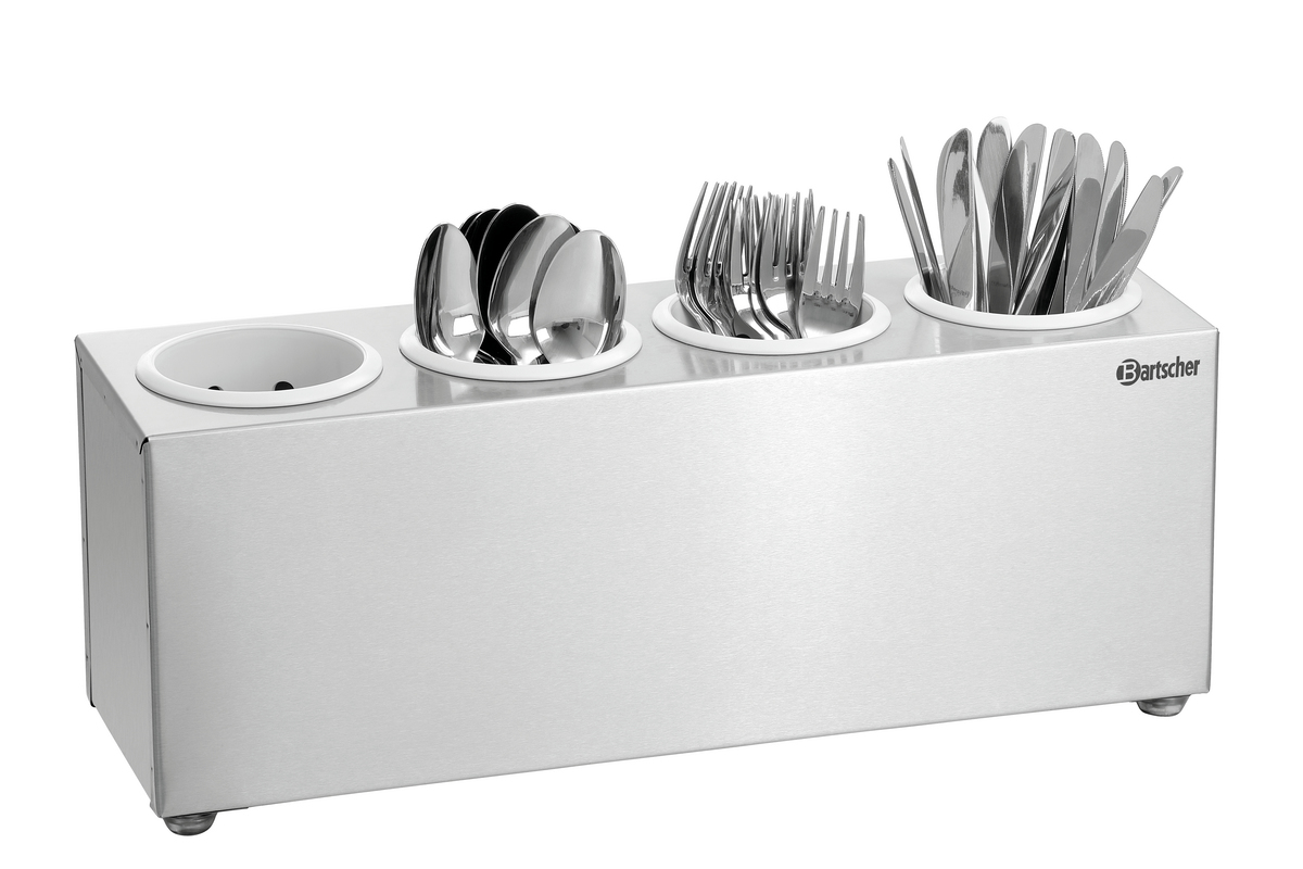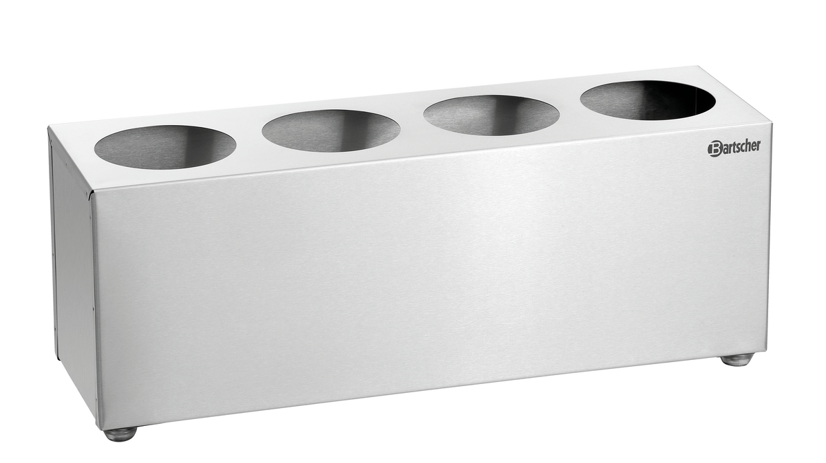 This cutlery holder is perfect for canteens, buffets, and self-service areas. The material quality and the fact that the optionally available cutlery pots can be removed provide the perfect prerequisites for hygienic cleaning.