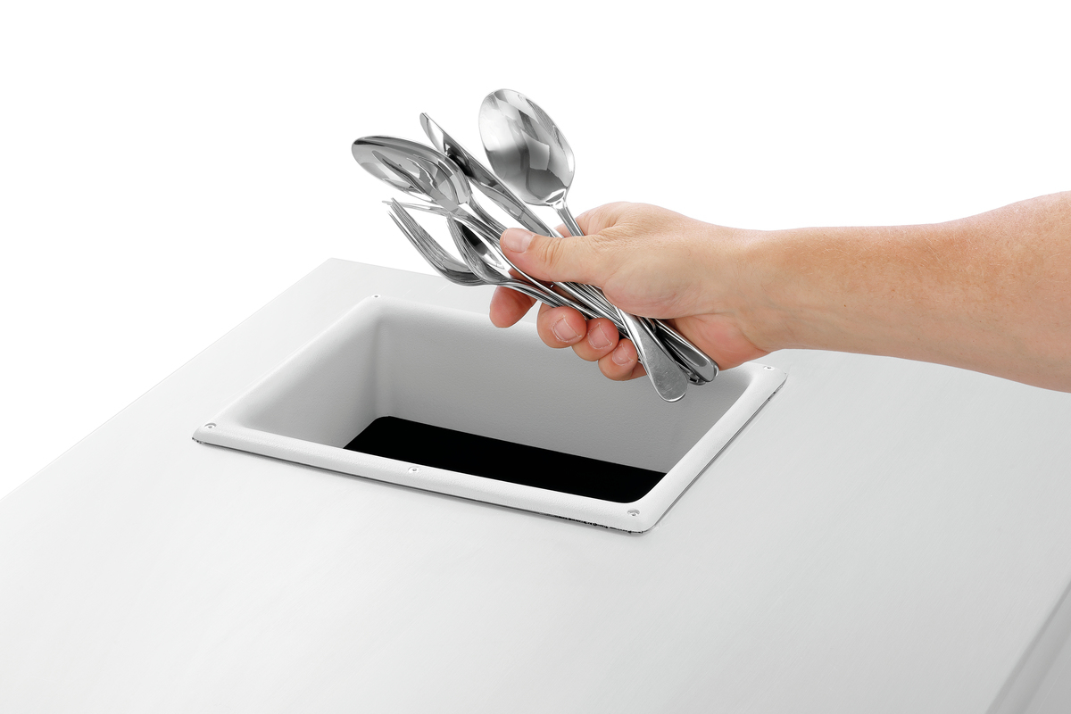 Cutlery polished to a high shine, with the capability to process up to 3,000 pieces of cutlery per hour. Each piece of cutlery is hygienically disinfected, thanks to the integrated UV lamp and the HACCP compliant operating temperature.