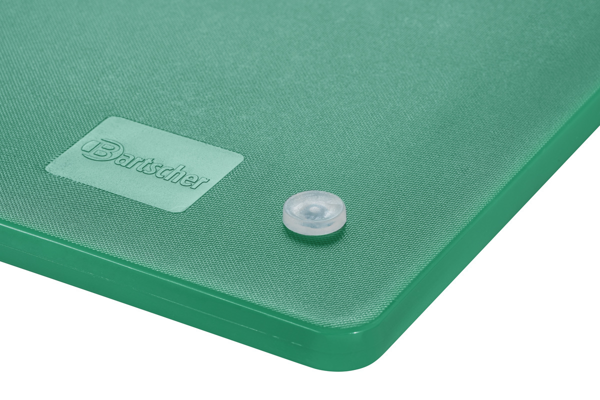 The focus is on hygiene with these 60 x 40 cm chopping boards, which are available in different colors for various food groups. This HACCP-compliant green chopping board is specifically designed for chopping fruits and vegetables.